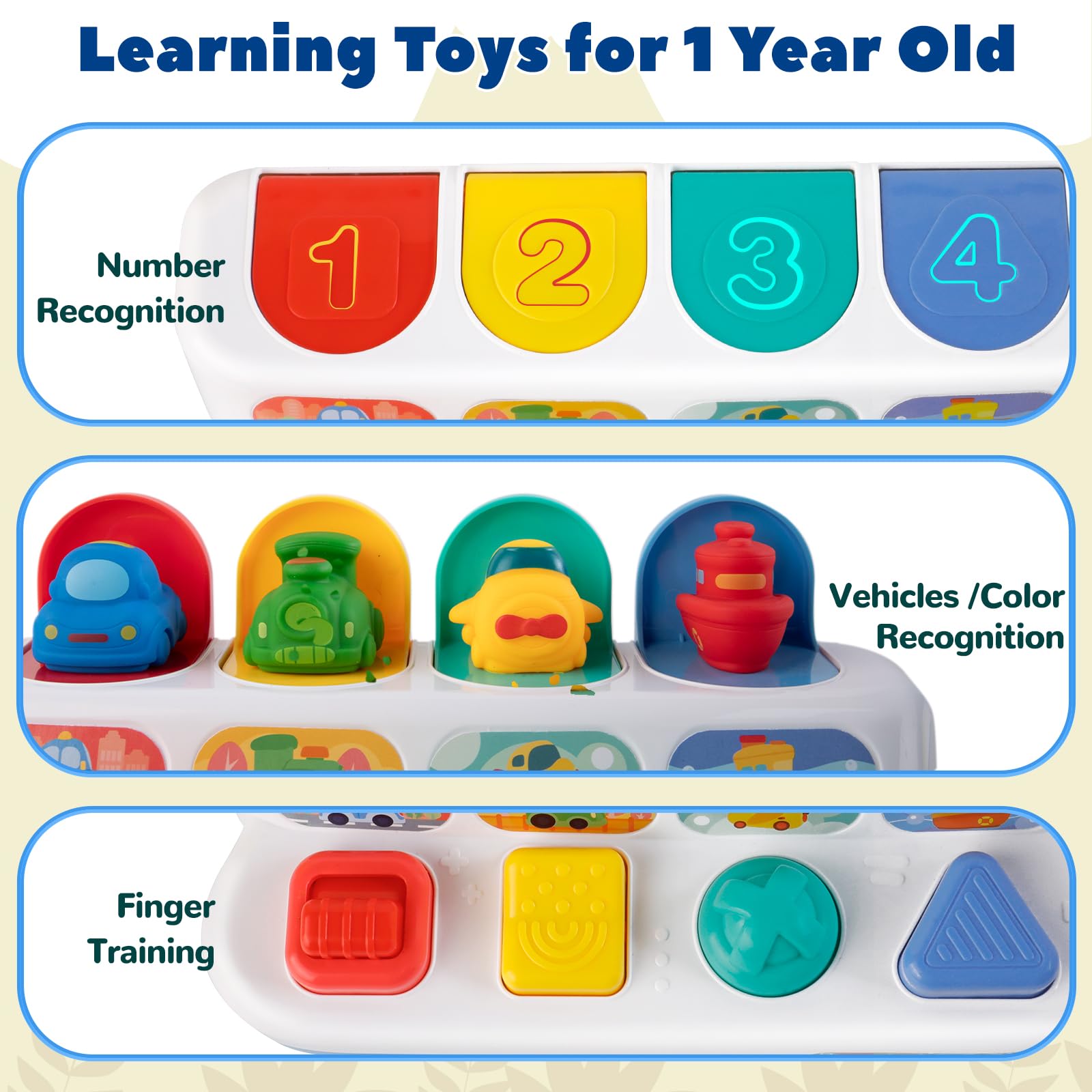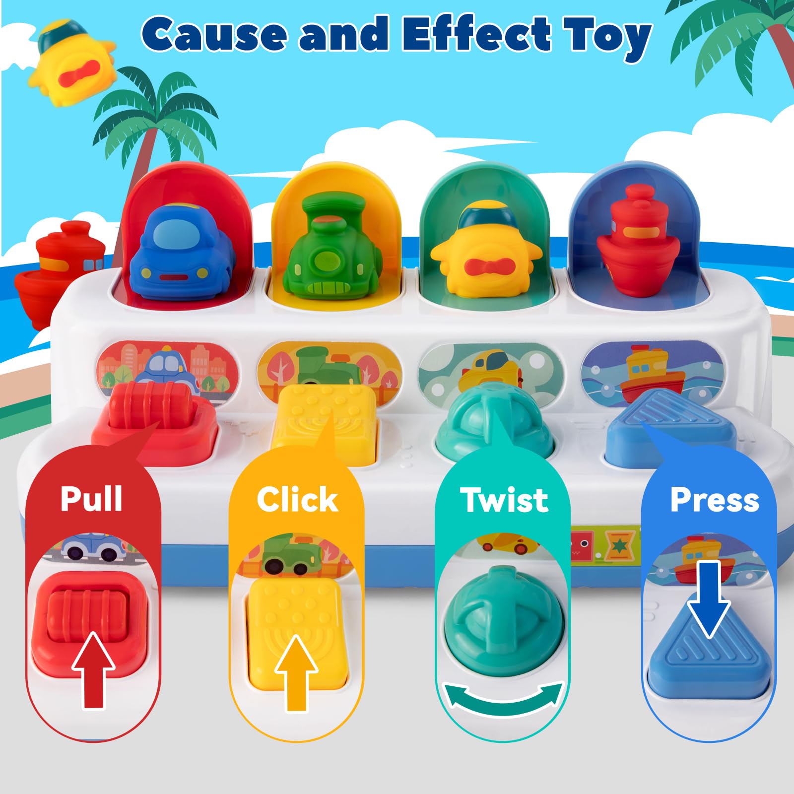 Interactive Cause And Effect Toys For Toddlers 1-3, Pop Up Vehicles Toys For Boys Girls, Sensory Baby Montessori Toys For 1 Year