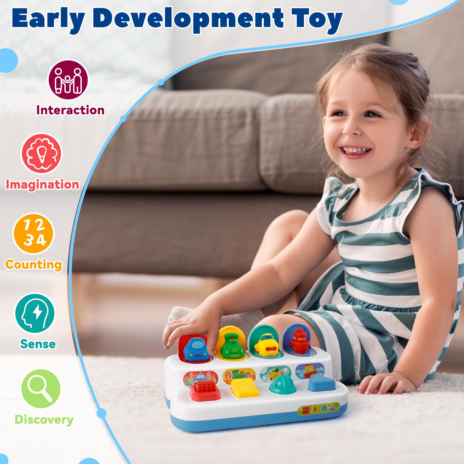 - Q: What age group is this interactive pop-up vehicle toy suitable for? A: This interactive pop-up vehicle toy is designed for toddlers aged 12 months and older, making it a great early development toy for young children.