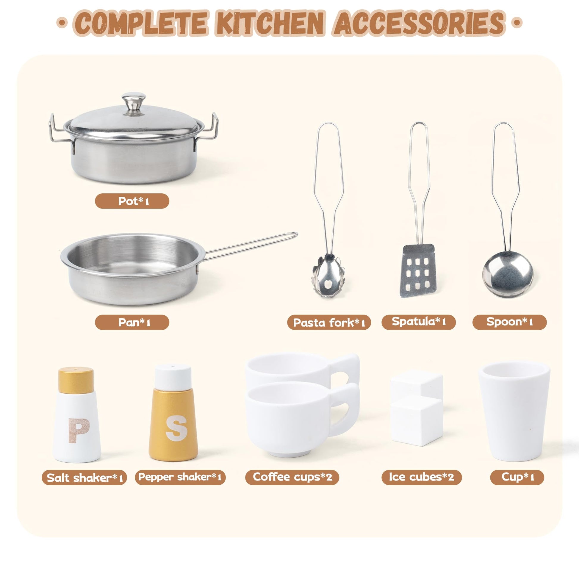 Interactive Wooden Toy Play Kitchen Playset For Kids - Realistic Lights & Sounds, Corner Design With 8 Accessories, Gift For Gir