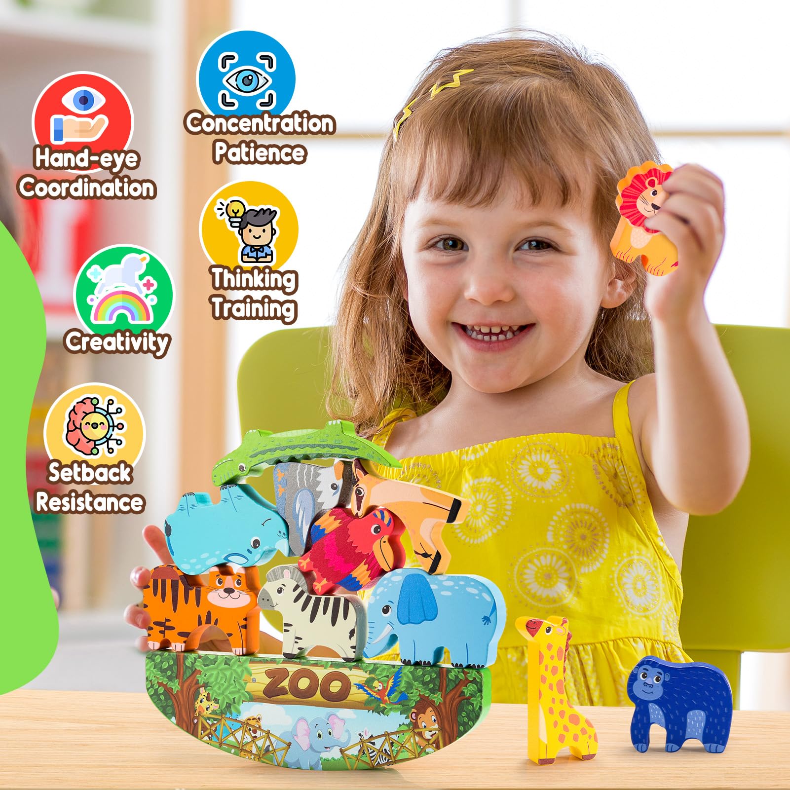 View compareIpourup Animals Montessori Toddler Toys 2 3 4 5 6 7 Year Old Boys Girls Wooden Animal Blocks Stacking Toy Kids Easter Birthday Gifts For Boy Girl Age 3-7 Educational Toys Fine Motor Balance Game