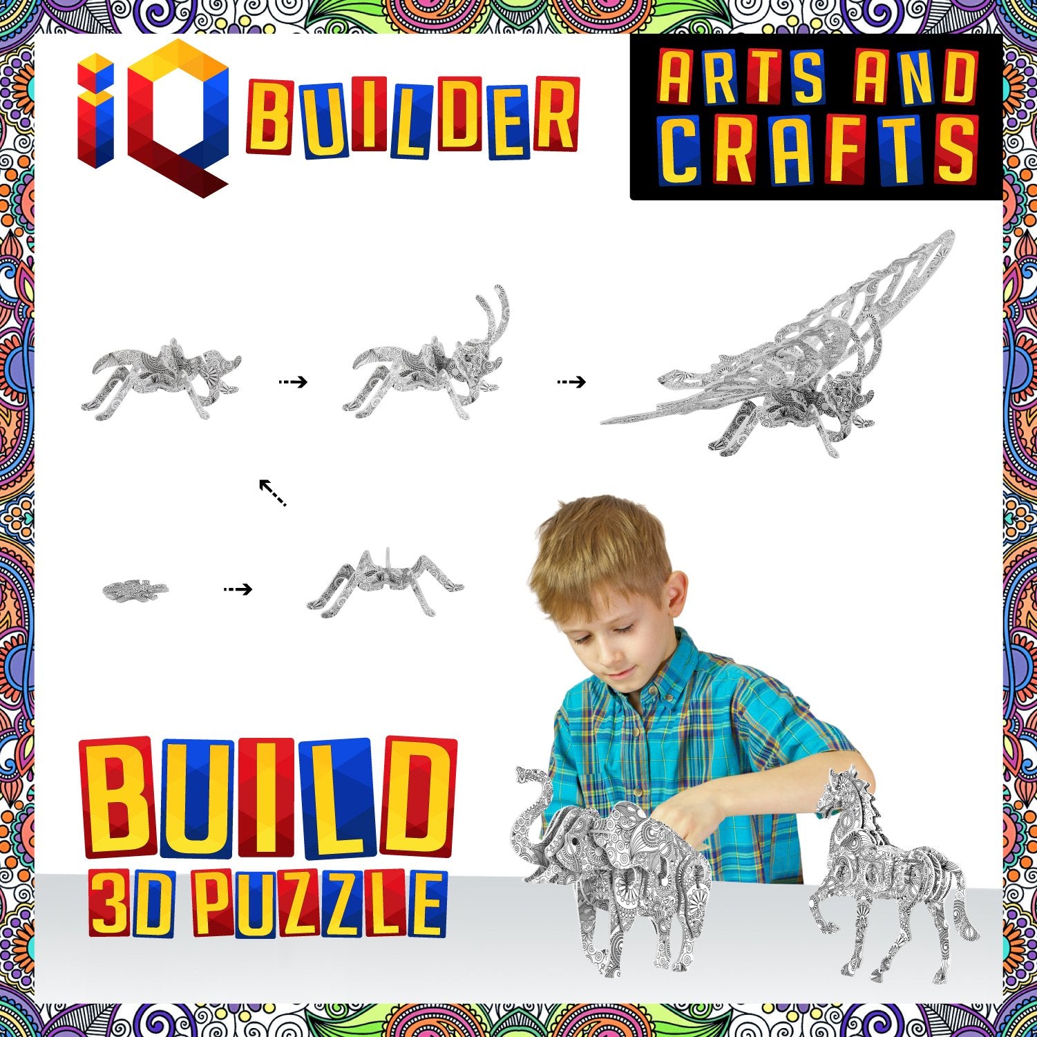 Iq Builder | Arts And Crafts For Girls Age 12 Year Old And Up | 3D Art Coloring Painting Animal Puzzle Set | Fun Creative Diy Toys | Family Craft Kit With Supplies | Best Toy Gift For Kids
