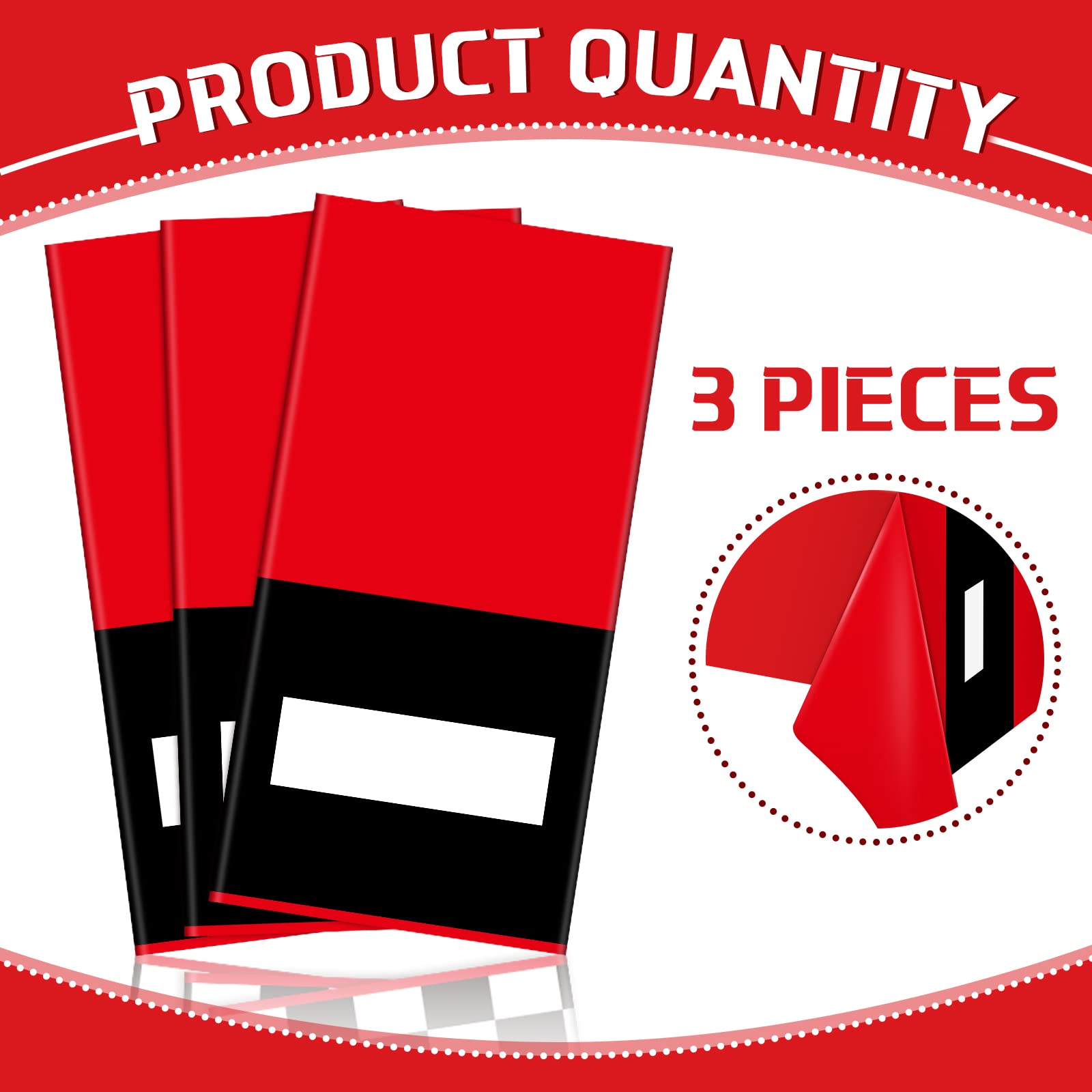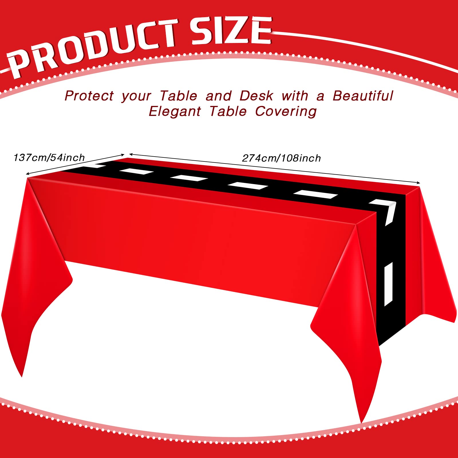 Features: Multi-purpose: The plastic rectangular table covers can function as a table runner to decorate desert table, but can also be laid on floor, hung onto wall, and applied as photo backdrop or gaming activity supplies. Applicable occasions: These racing theme party decorations are suitable for decorating racing theme parties, festivals, celebrations and other events, making your party more interesting and joyful, full of racing theme party atmosphere. Specifications: Material: PE Main color: red Size: approx. 54 x 108 inch / 137 x 274 cm Package includes: 3 x Racetrack tablecloths Notes: Manual measurement, please allow slight errors on size. The color may exist slight difference due to different screen displays.