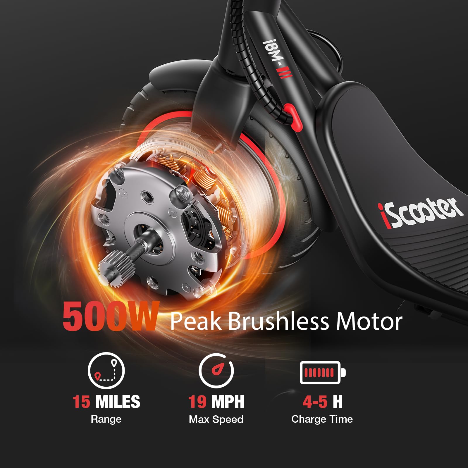 Ride Smart. Ride Free. Ride iScooter i8M. The iScooter Electric Scooter for Adults and Teens is your ultimate urban travel solution. Powered by a robust 350W motor, it reaches up to 19 MPH with a max range of 15 miles-built to match your daily hustle. Whether you're heading to work, class, or just exploring the city, this sleek e-scooter gets you there faster and smarter. Enjoy a connected ride with smart App Control, letting you lock your scooter, switch modes, and track performance directly from your phone. The crystal-clear LED Display keeps essential ride data right at your fingertips. Riding comfort is a priority-8.5'' pneumatic tires absorb bumps and ensure a stable glide across various surfaces. The dual braking system adds reliable safety for your peace of mind. When youre done, fold it up and take it on the go. Lightweight, powerful, and feature-packed, the i8M is designed to move with your life-wherever it takes you. Why settle for average? Choose iScooter i8M, and upgrade your lifestyle.