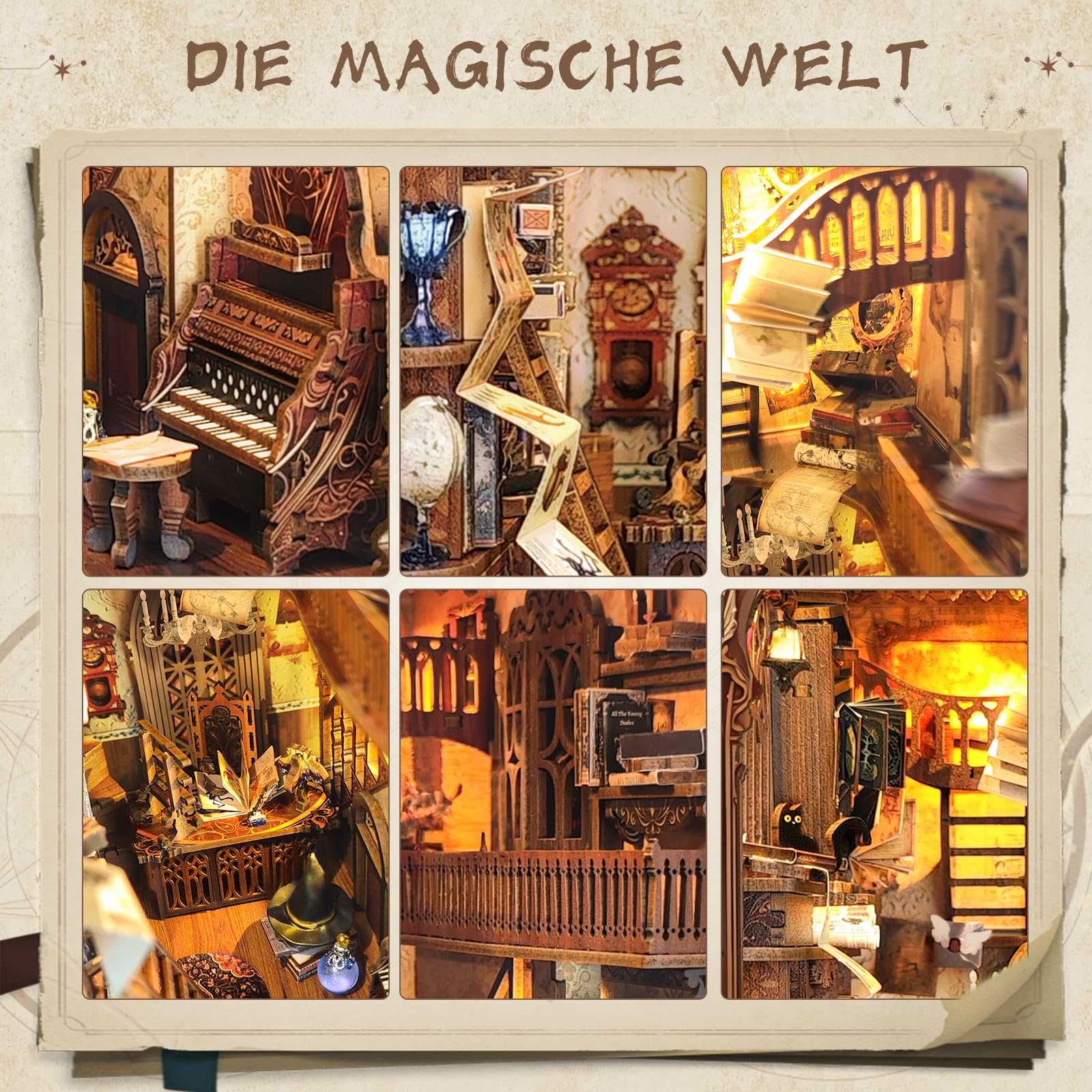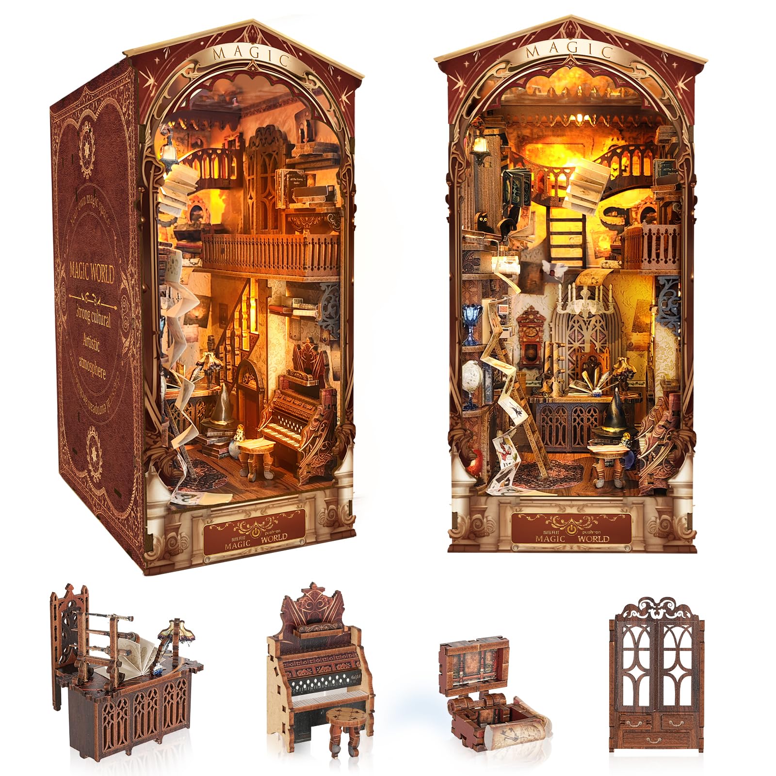 Magical World Book Nook Dollhouse Kit: Our Magical World Book Nook Dollhouse Kit Contains Realistic Miniature Furniture, With A Highly Reproducible Attic Top And Bottom Design, Showcasing The Interior'S Rich Modelling Design And Sky-High Spatial Structure Through The Corner Staircase And Skeleton Fence. It Is Assembled From Small Parts, Which Helps To Develop Logical Thinking Skills And Exercise Hands-On Skills In The Process.
