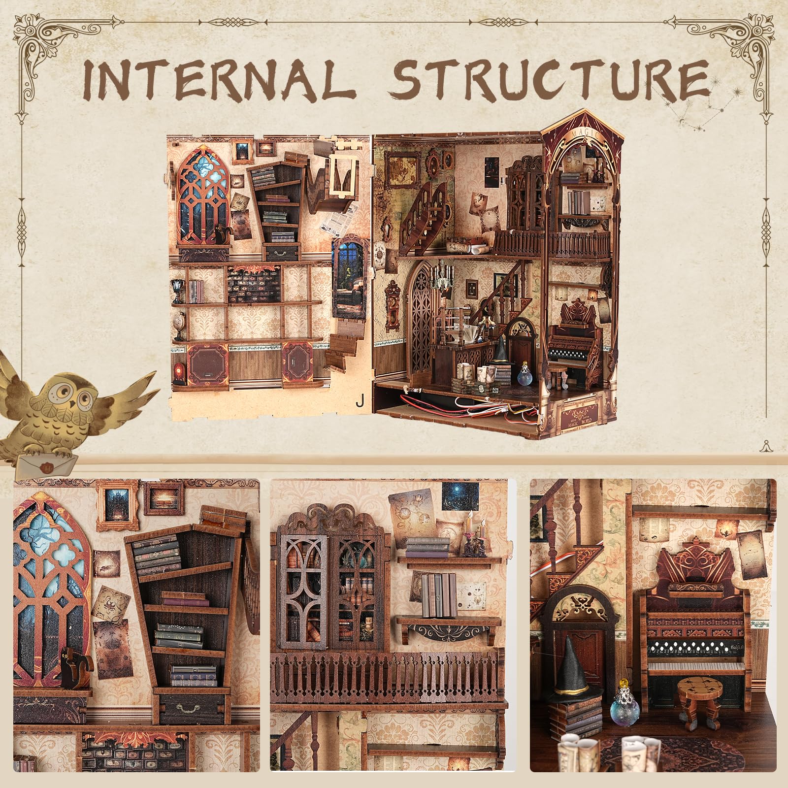 Itefdtutne Book Nook Kit For Adults, Diy Miniature Dollhouse Booknook Kit With Led Light & Dust Baffle, 3D Wooden Bookshelf Puzz