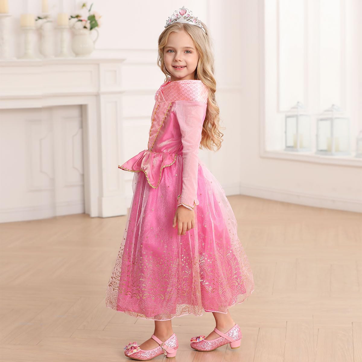 Itvti Little Girls Princess Costume Dress Up Cosplay For Carnival Halloween Party Pink, 6-7 Years(Tag 140)
