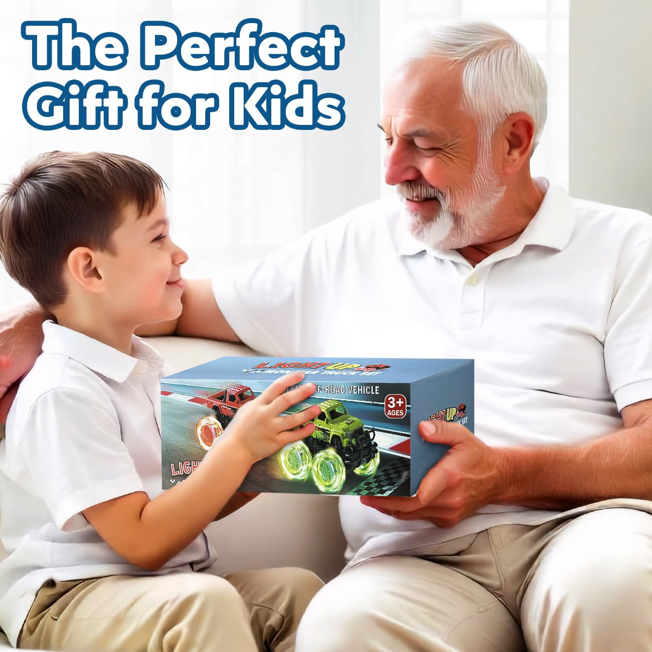 Designed for Little Racers: Truck Toy with a size perfect for small hands, these trucks ensure easy handling and hours of fun, toy trucks for toddlers 2-4,toddler cars toys,trucks for boys,encouraging independent play for toddlers and young kids.Trucks for Kids Ages 4-8,toddler trucks,kids Trucks,toddler truck toys,truck toys for toddlers 1-3,kids truck,trucks for toddlers,car toys for toddlers 1-3,toddler toy cars,toy trucks,toy trucks for boys age 8-12,truck toys for boys 4-7,monster trucks | Robust and Reliable: Building imagination-Imaginative children,Exploring adventure-Adventurous kids,Race track play-Energetic kids,Storytelling sessions-Creative children,Collectible series-Boys aged 3-7,After-school activity-Girls aged 3-8,Rainy day fun-Preschool boys,Family game night-Preschool girls,Group play-Kids who love trucks,Solo play-Kids who love vehicles,Park day-Kids who love construction,Birthday surprise-Kids who love adventure,Teamwork skills-Kids who love role-play | A Gift Kids Will Love: Whether it's a birthday, holiday, or party favor, these LED monster trucks are guaranteed to impress kids aged 3 and up. Monster Truck Toy,Toddler Truck,Monster Trucks for Toddlers 2-4 Years,Add excitement to any special occasion! With their larger-than-life presence and adrenaline-fueled play, these trucks are sure to delight any young Monster Truck enthusiast.truck toys,monster trucks for boys age 4-7,trucks,car toys for 2 year old,monster trucks for boys age 3-6 | Built to Last: be made from durable, high-quality materials that withstand all the smashing, bashing, and rough play kids can throw at them. Perfect for adventurous toddlers! Trucks for Toddlers 1-3 Boys,these monster trucks are tested for toughness,they're up for any challenge like a friendly competition.Toddler cars toys,trucks for boys,monster truck toys for kids 3-5,pull back cars for toddlers 1-3,big trucks for toddlers 1-3,big trucks for toddlers 3-6,big truck,big toy trucks,big trucks | Mesmerizing Light-Up Wheels: Bring the WOW factor with transparent monster wheels featuring dual-color LED lights! Each spin creates an eye-catching light show, making every play session magical.Ignite the imagination with the Lightning Wheels Monster Trucks Demolition Doubles pack, where 2 rival monster trucks square off in high-octane battles straight out of the box.Toy Trucks for Toys Age 4-7, each 1:65 scale die-cast truck is carefully matched to create the ultimate adversaries.