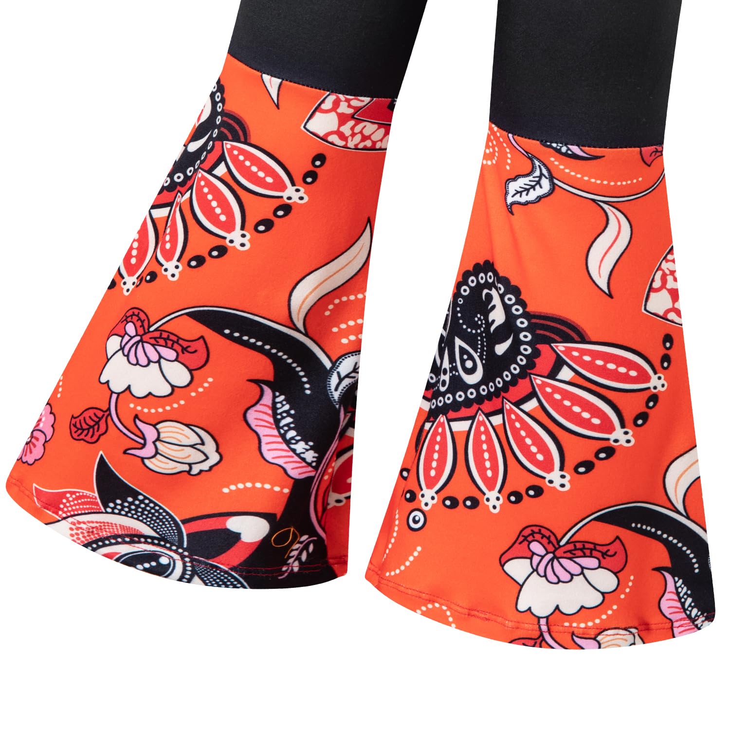 Iwalue 60S 70S Outfits Hippie Kid Girls Costume Set Disco Boho Flared Pants Accessories Set(Red,11-12 Years)