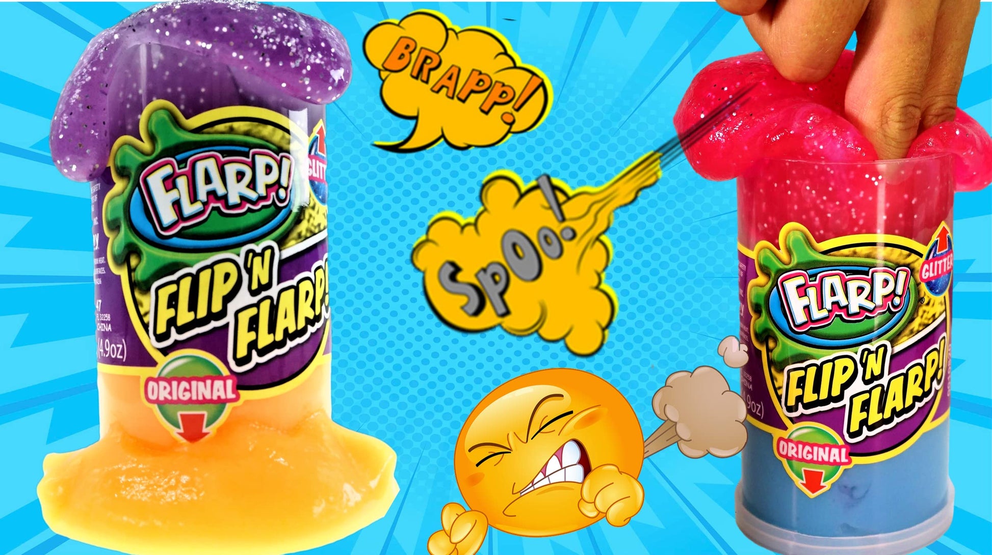 ORIGINAL & GLITTER Double Pack Flip 'N Flarp, Super Delicious Scented Flarp Slime f-a-r-r-t Maker will make you laugh out loud because it makes hilarious Farrt Gas passing noises!. Prank your friends and with this awesome fartting noise maker gag gift that's great for parties and get togethers. It's also great for putty training in a fun and comical way. Imagine your kids happiness as they laugh out loud with this hilarious putty. Great Bulk Slime Party Favors. Scented putty wit delicious smells like Berry, Banana, Lime, Grape, Strawberry and more. In assorted colors ( Purple, Orange, Blue, Pink & Red)