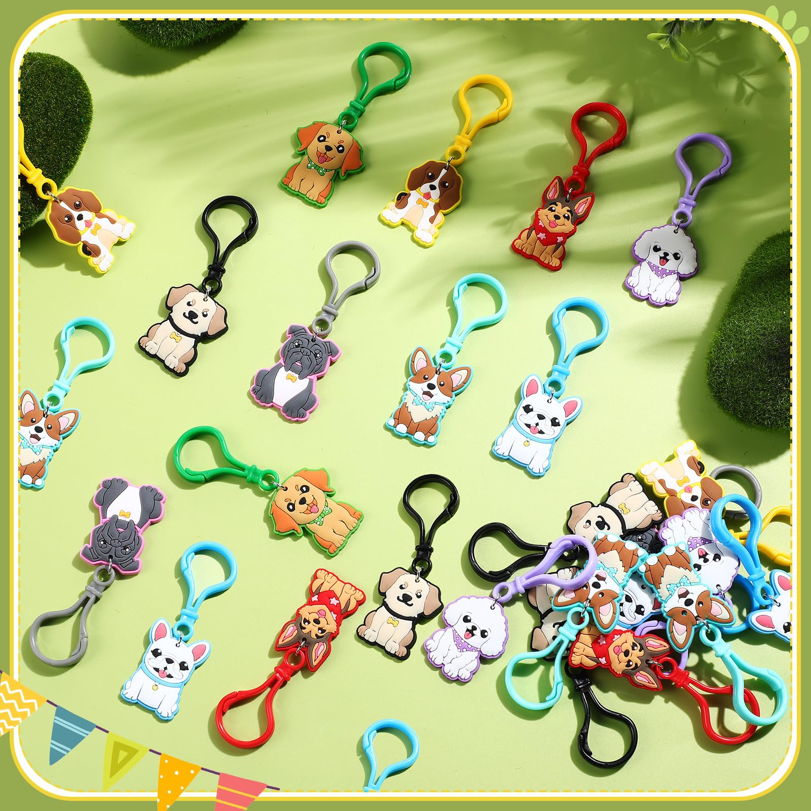 Jadive 24 Pack Puppy Dog Keychains Dog Party Favors Birthday Decorations Cute Animals Ornament Pendant for Christmas Boy Girl Gi