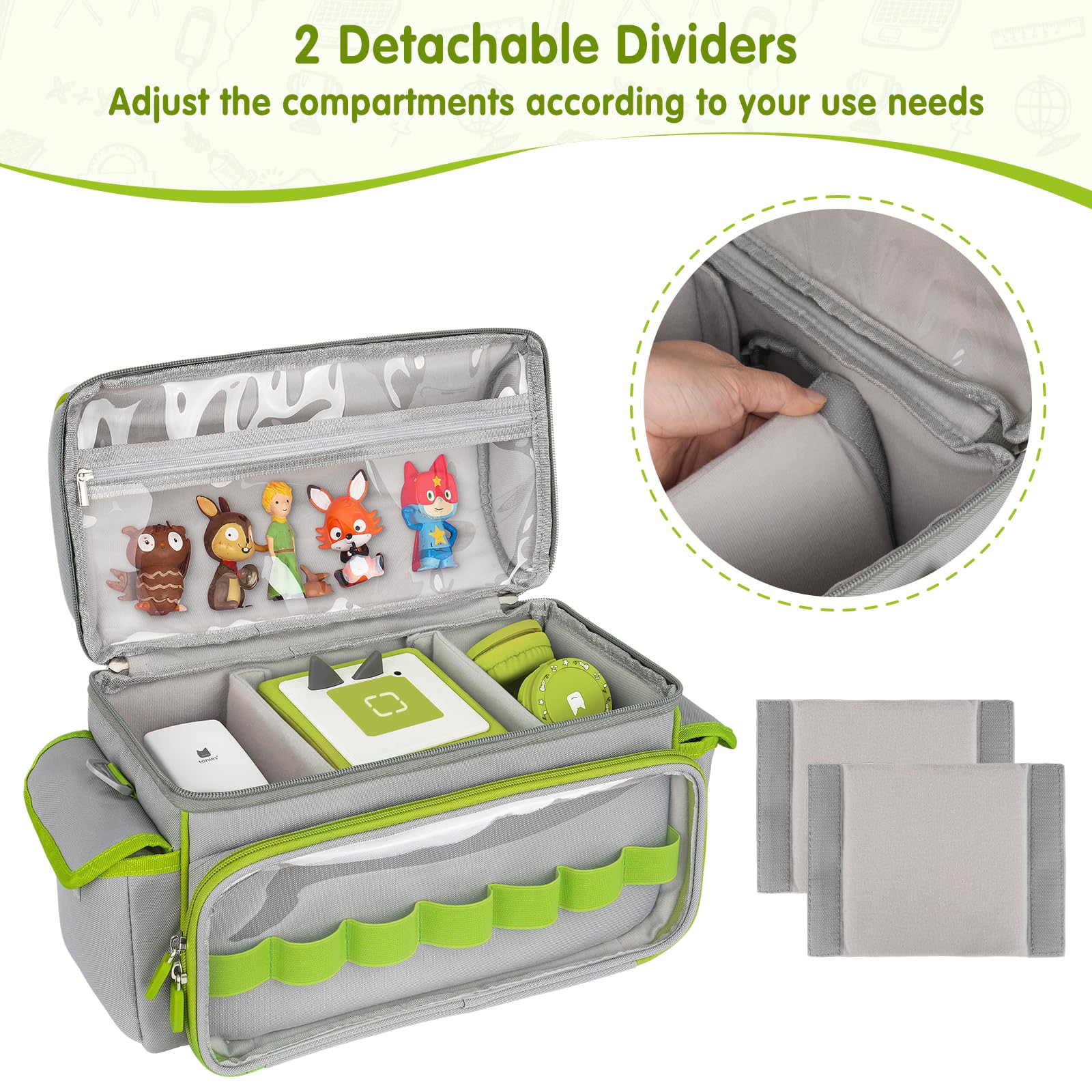 Jaffzora Carrying Case Compatible with Toniebox Starter Set Cute Storage Bag Fits for Tonies Figures Characters Tonies Headphones & Accessories Grey&Green(Bag Only)