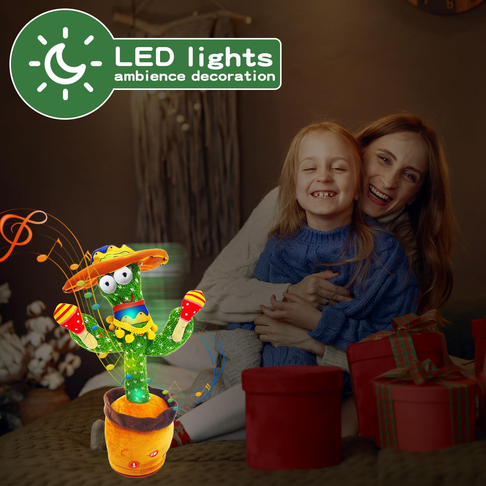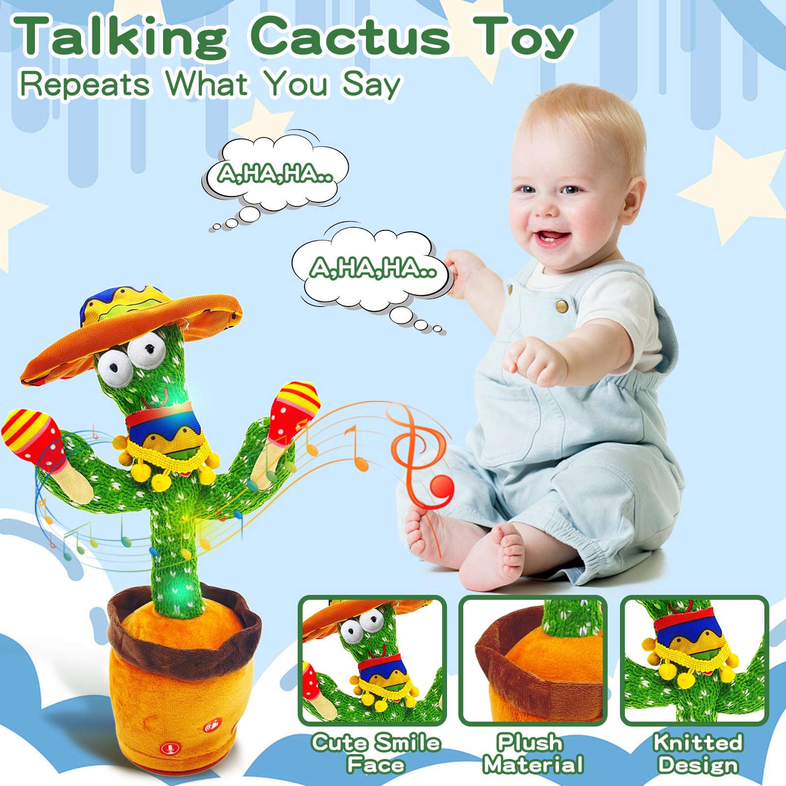 - Q: What songs can the cactus toy sing, and how many are included? A: The Talking Cactus Toy comes with 120 English songs that it can sing. This variety ensures hours of entertainment and engagement for children, as they can enjoy a new song each time they play.