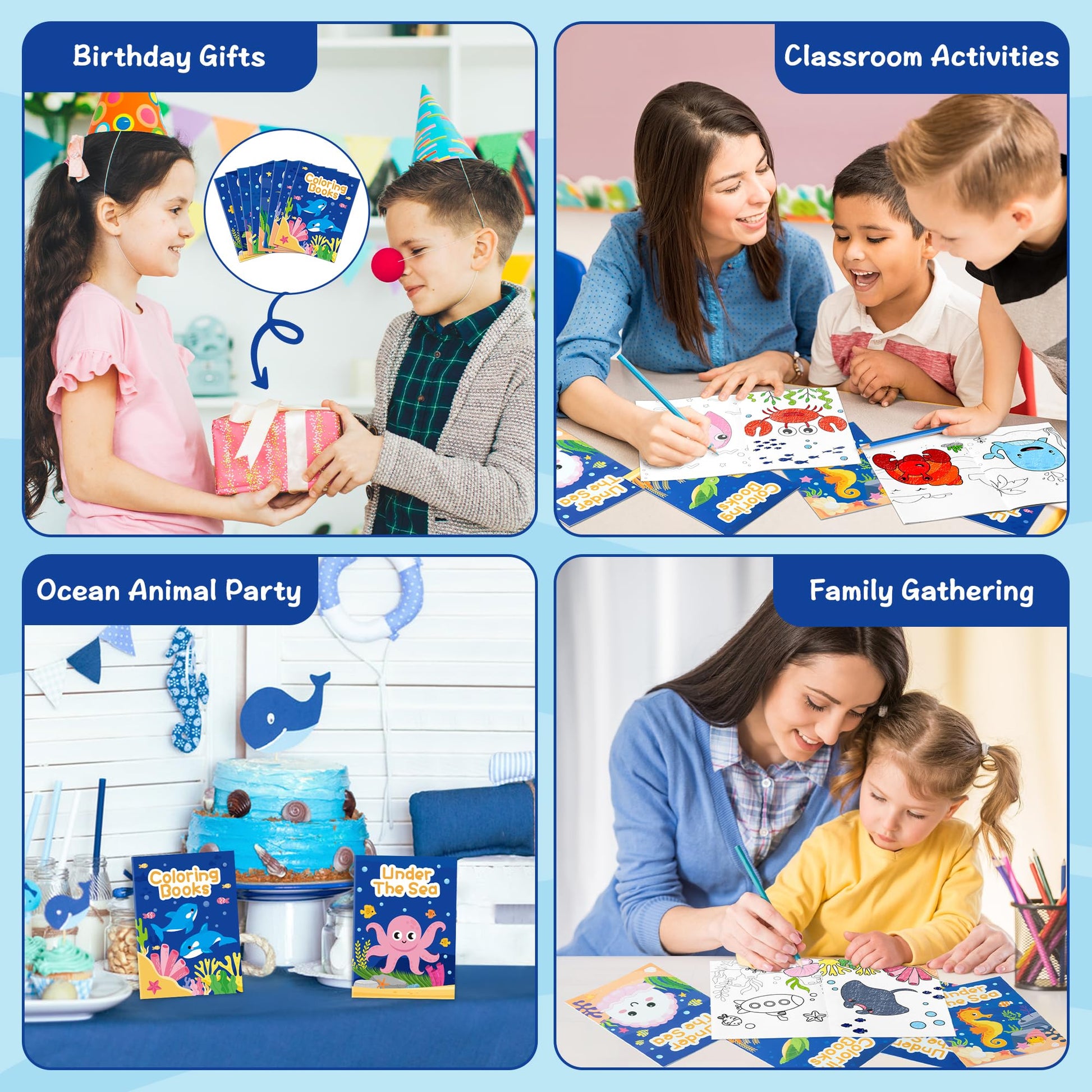 - Q: How many coloring books are included in the package? A: Each package includes a total of 24 coloring books featuring 8 different ocean animal designs, with 3 copies of each cover, providing plenty of variety for group activities or party favors.