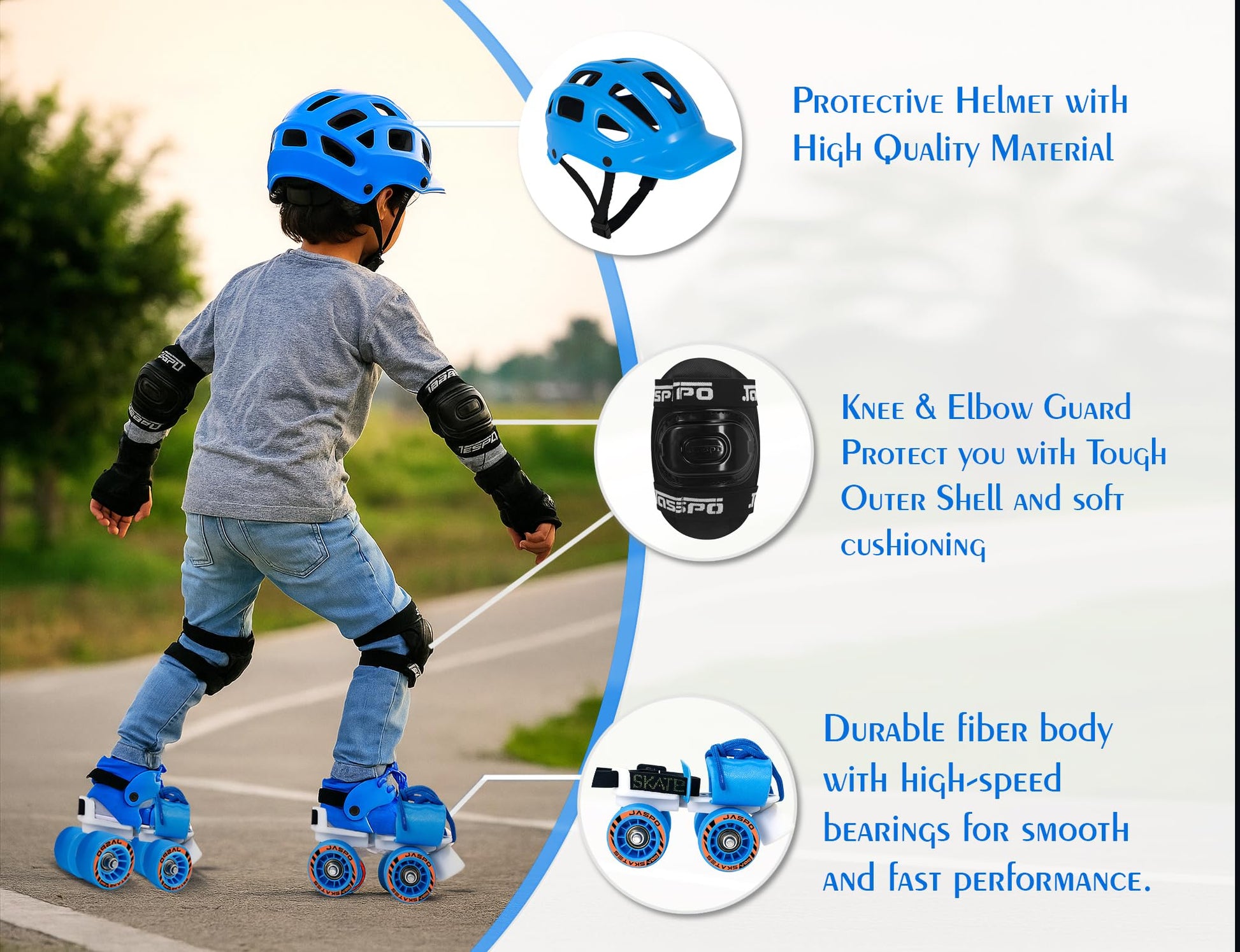 Jaspo Kids Delite Intact Junior Skates Combo (Skates+Helmet+Knee+Elbow) Suitable for Age Upto 5 Years, Unisex, Outdoor Wheel, Bl