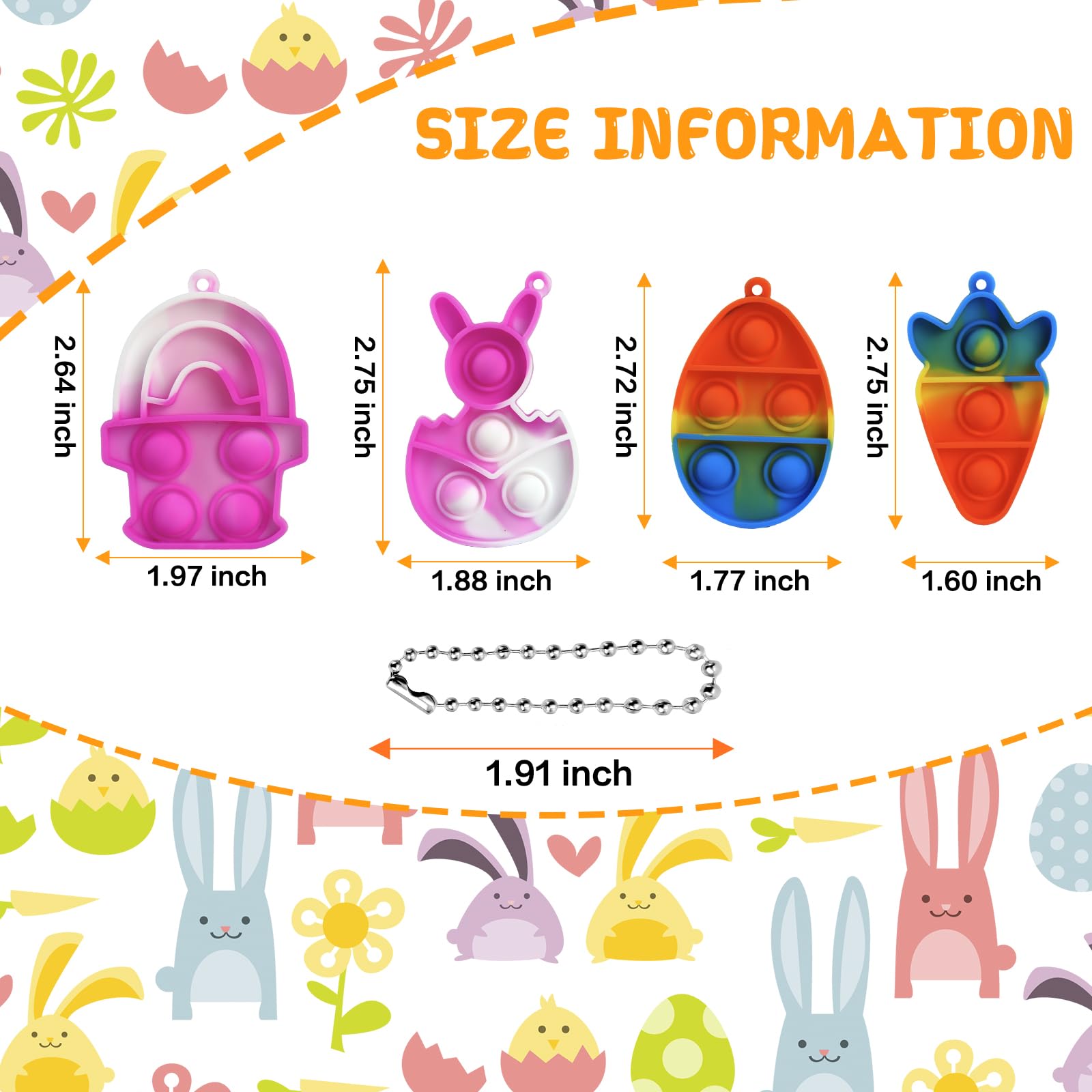 - Q: What are the dimensions of each mini Easter pop fidget toy? A: Each mini Easter pop fidget toy measures approximately 3.0 inches in length and 2.01 inches in width, making them the perfect size for little hands to grasp and enjoy.