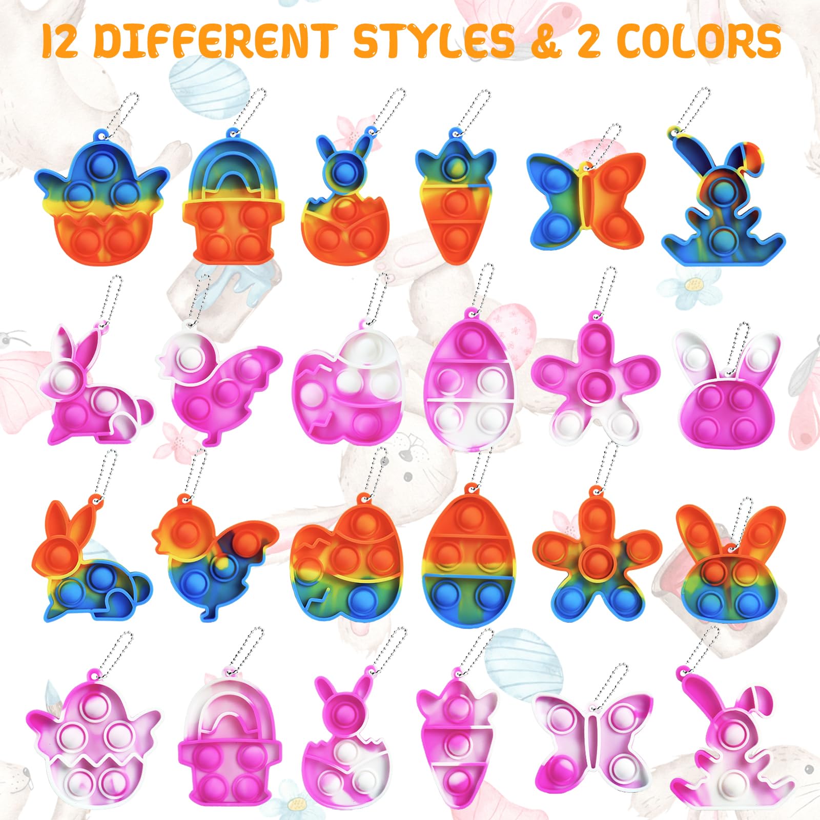 Jdsty 24Pcs Easter Pop Fidget Toys, Mini Easter Simple Pop Fidget Toys For Kids Boys Girls Toddlers Easter Basket Stuffers Gifts
