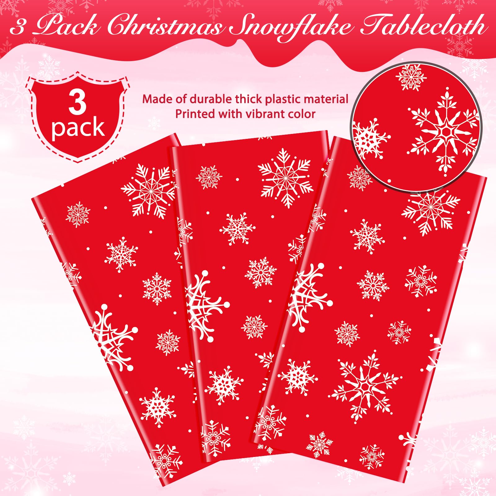 Jectivs 3 Pieces Christmas Snowflake Plastic Party Tablecloth Decorations,White Snowflake Red Xmas Backdrop Sign Table Cover Ban