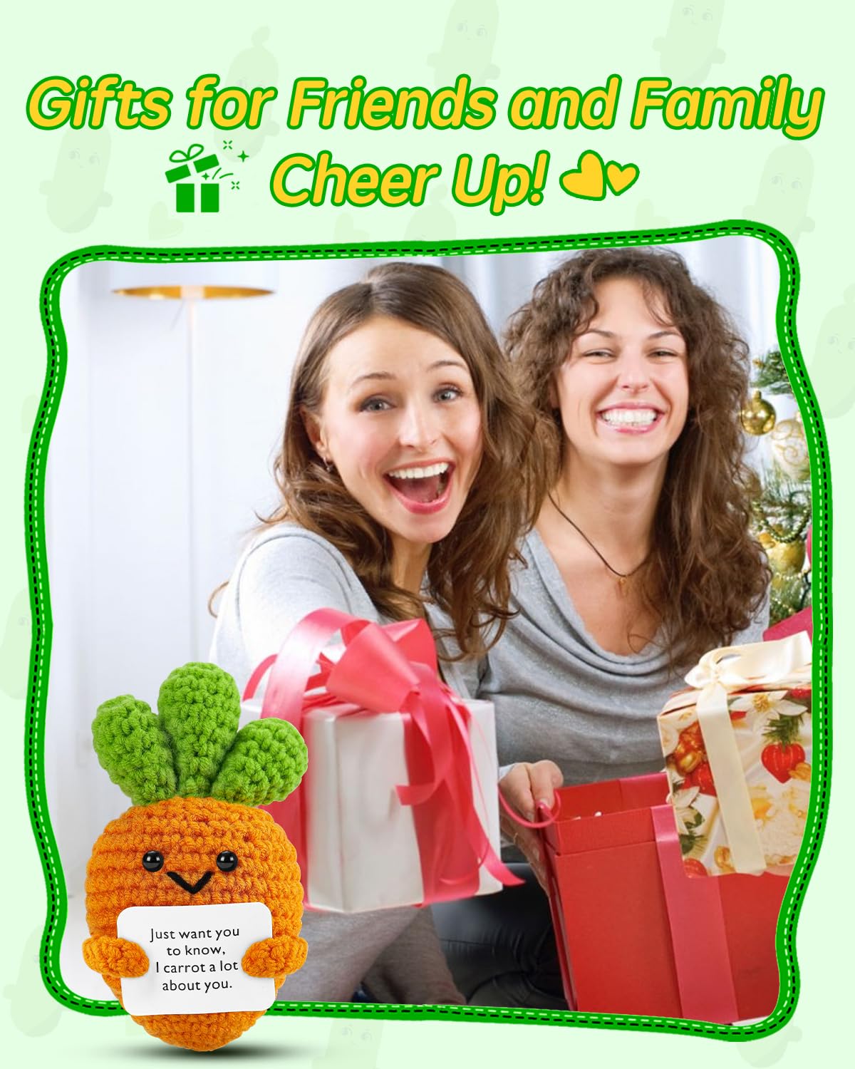 Jelutar Mini Funny Positive Potato, 3 Inch Knitted Doll With Positive Card For Cheer Up Gifts And Party Decorations, Cute Positive Potato Crochet Doll For Birthday Gifts (Positive Carrot)