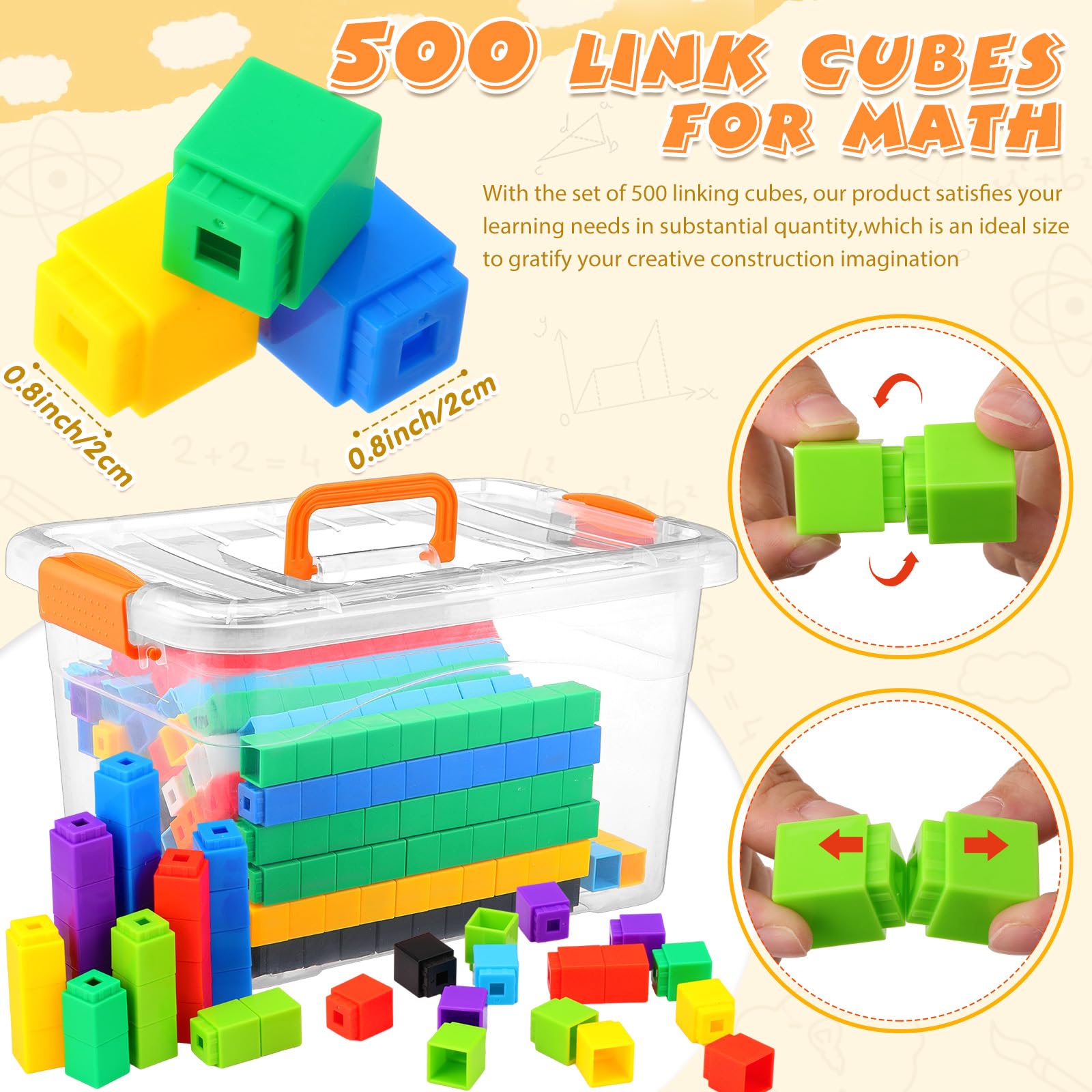 Jenaai 500 Pcs Math Learning Linking Cube with Storage Container Counting Cubes, Colorful Plastic Counting Blocks, Manipulatives