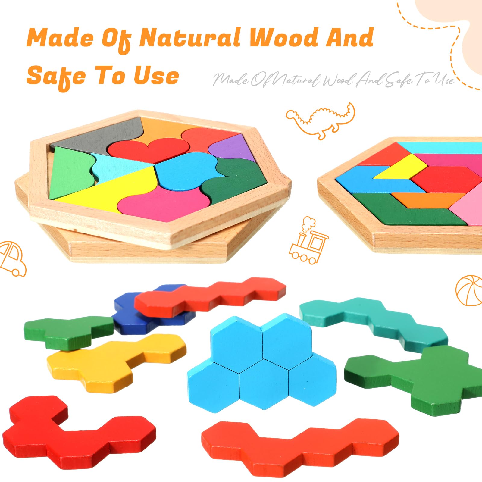 Jerify 8 Pack Wooden Hexagon Puzzles Children Educational Puzzle Blocks Shape Pattern Block Geometric Tangram Jigsaw For Kids Ad