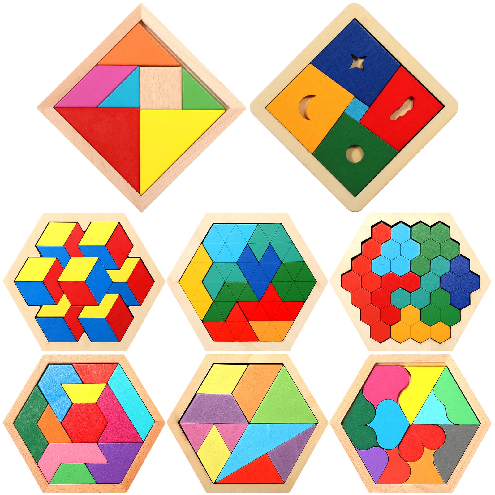 View compareJerify 8 Pack Wooden Hexagon Puzzles Children Educational Puzzle Blocks Shape Pattern Block Geometric Tangram Jigsaw For Kids Ad