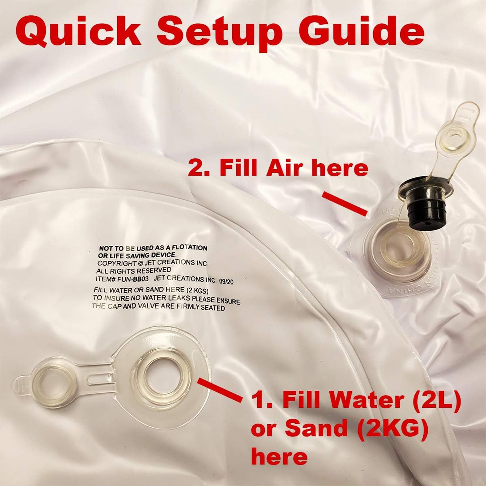 - Q: How do I set up the inflatable punching bag? A: To set up the punching bag, fill the bottom valve with 2 liters of water or 2 kg of sand for weight, ensure the cap and valve are firmly seated, and then fully inflate the bag using the side air valve.