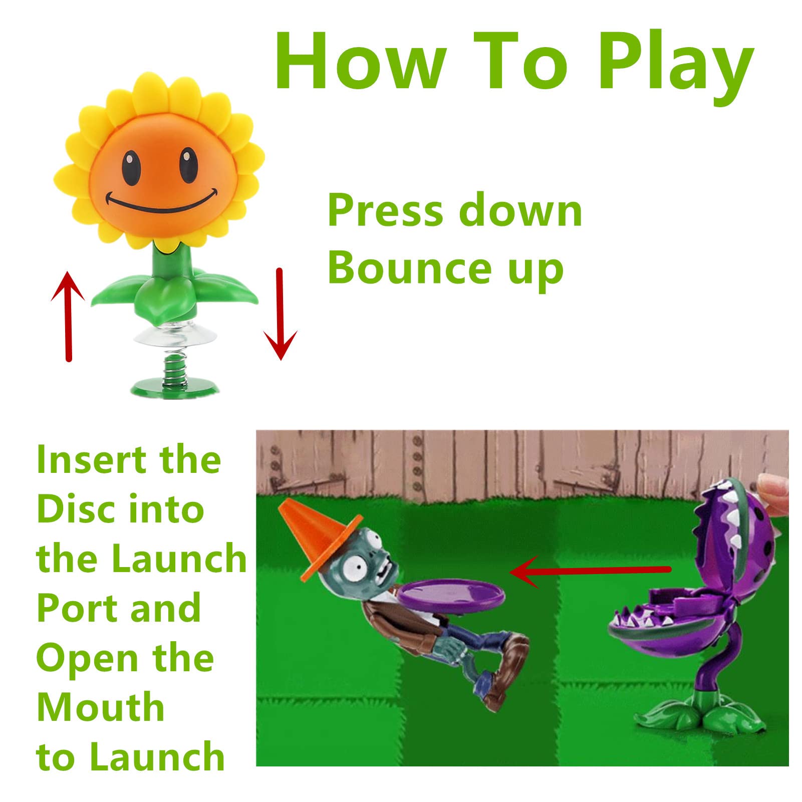 5 PCS Plants Toys Action Figures Zombies PVZ Toys Set 1 2 Series Great Gifts for Kids and Fans Birthday and Christmas PartySize:2 - 6 inch / 5 - 15cm.Package: Sunflower + Chomper + Peashooter + Buckethead Zombie + Conehead Zombie + 6 PCS Launcher Tips: This product has small Balls. Don't swallow it by children so as not to cause bad consequences. If the child is too young please play with toys under the supervision of parents.