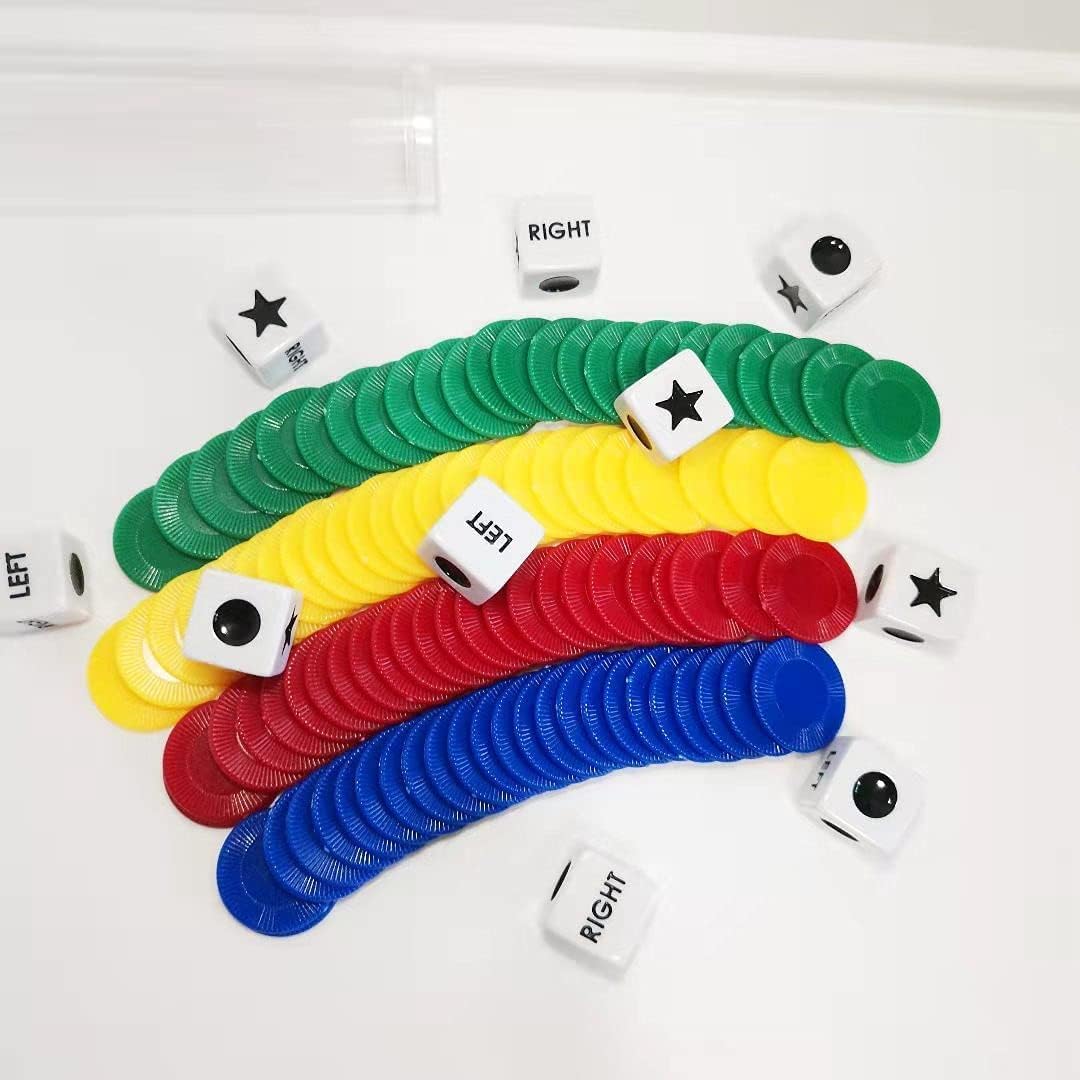 - Q: What is included in the JHFY Left Right Center dice Game Prime Set? A: The JHFY Left Right Center dice Game Prime Set includes 3 dice, 24 chips, and a game manual to guide you through the gameplay.