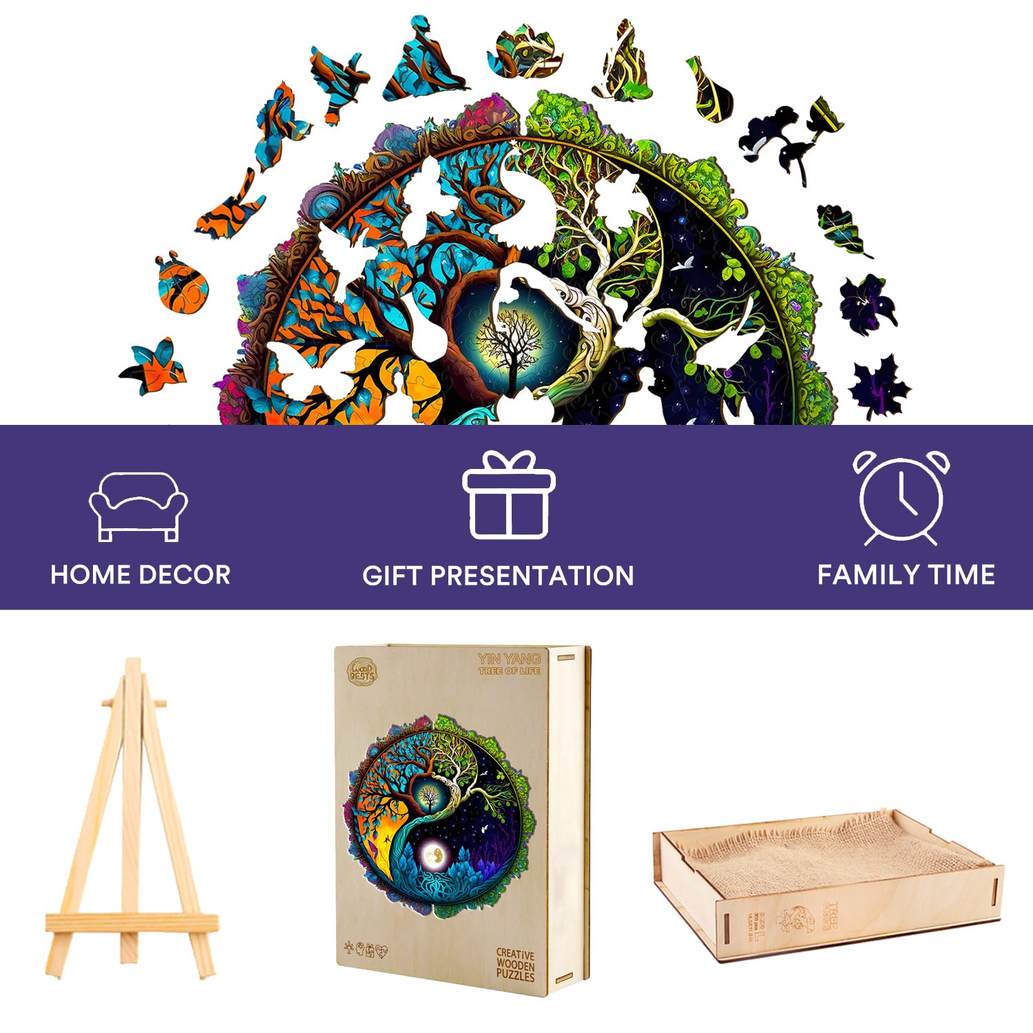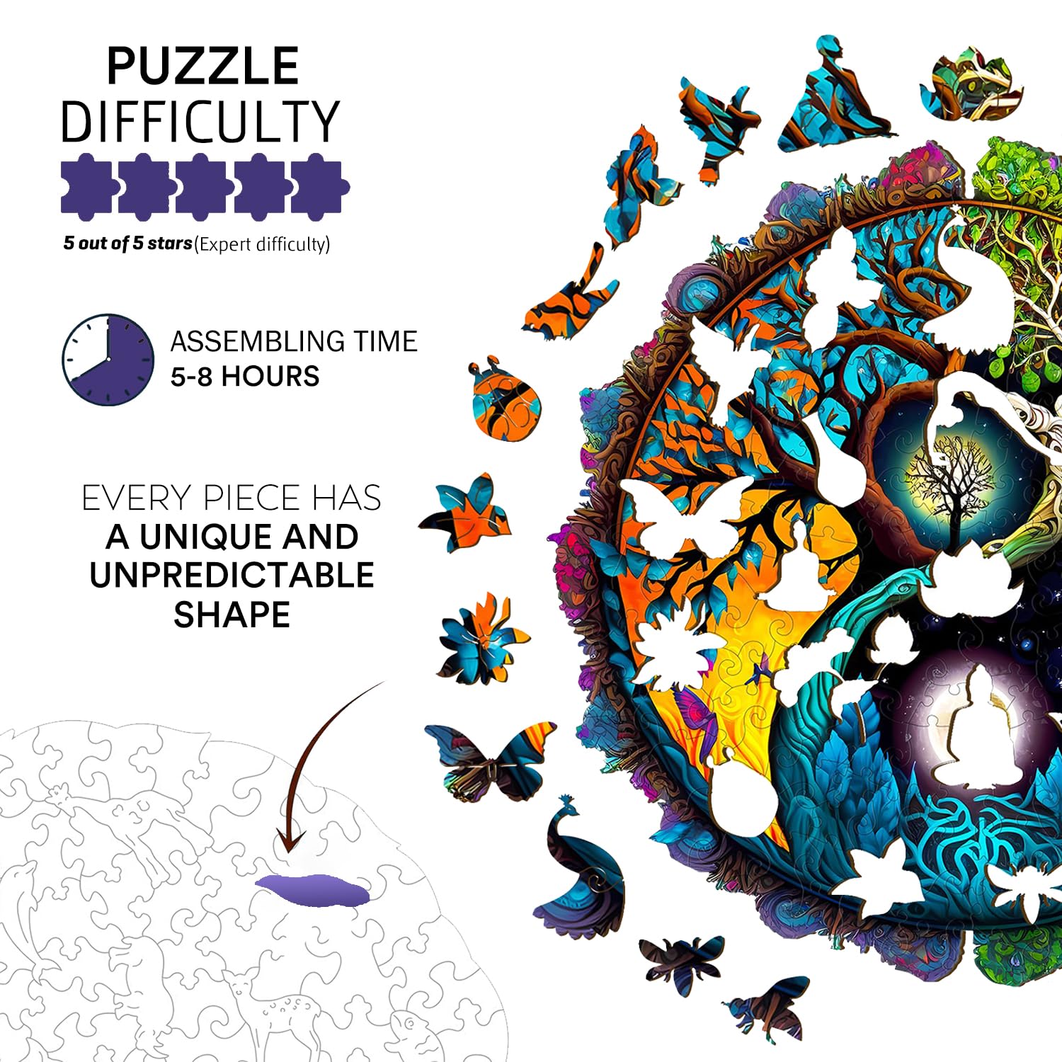 Jigfoxy Wooden Puzzles for Adults, Tree of Life Wooden Jigsaw Puzzles, Unique Zen Shape Puzzles, Christmas Thanksgiving Gifts fo