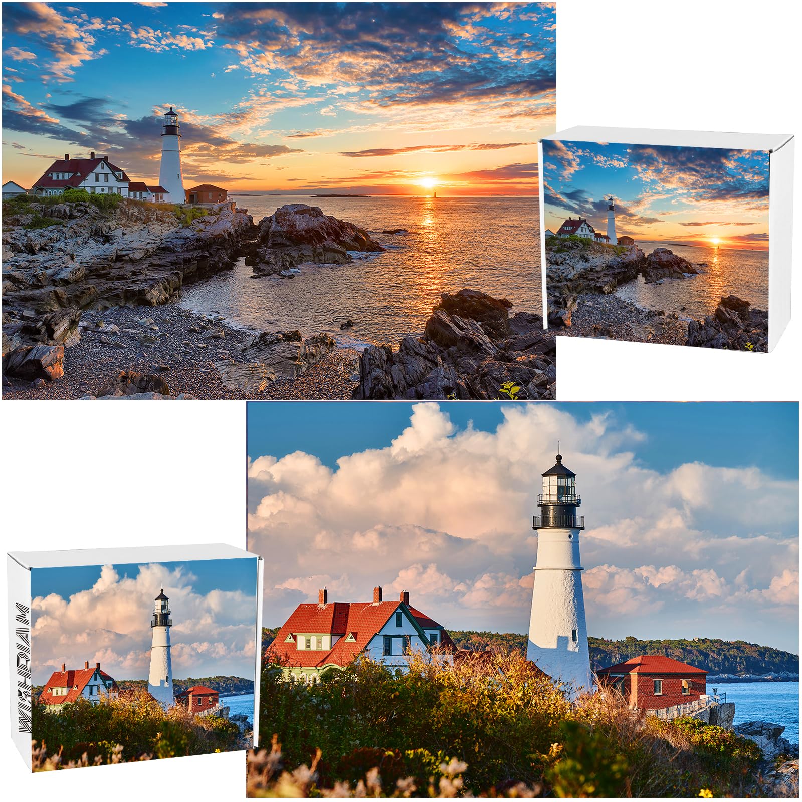 Jigsaw Puzzles 2 Pack 1000 Pieces - Wishdiam Puzzles For Adults - Lighthouses Portland Head Light Nature Landscape Impossible Challenging Puzzles For Home Decor Birthday Party Gifts Toy For Men Women