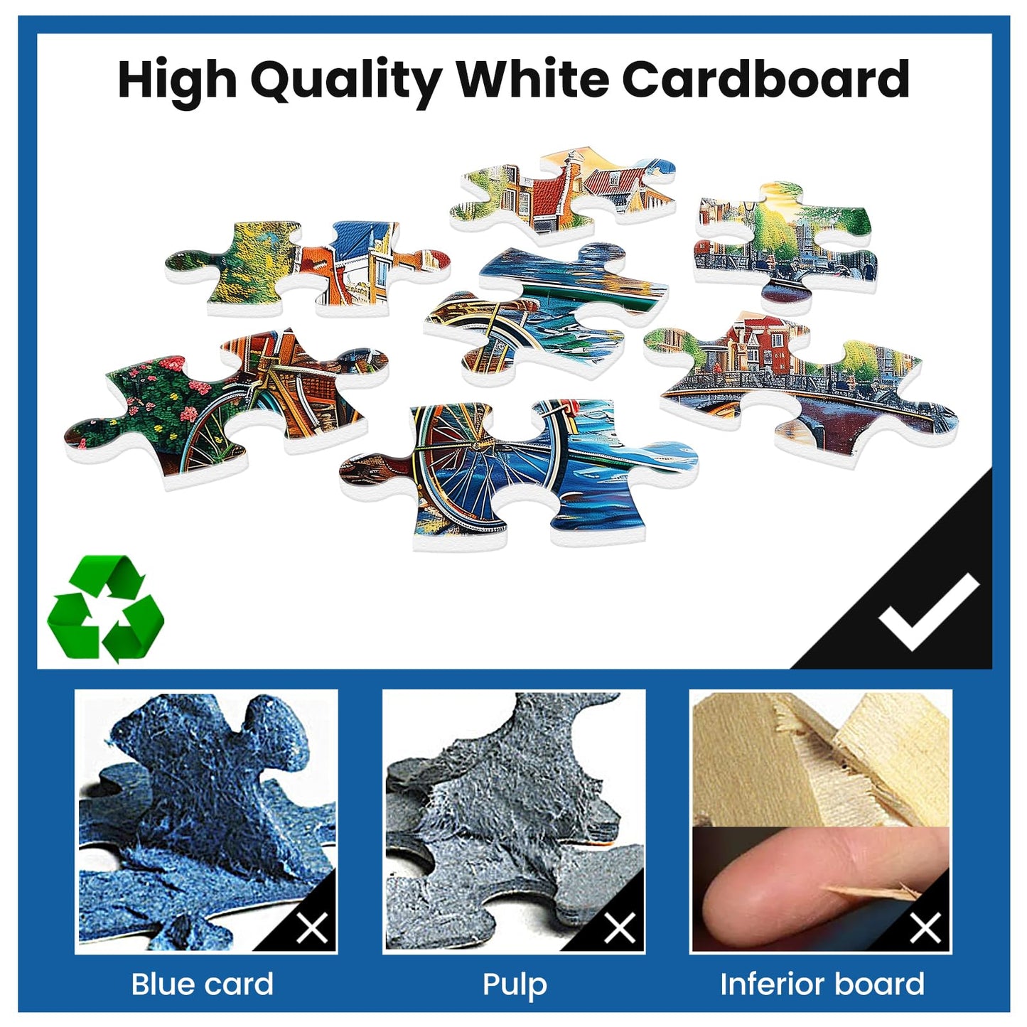 - Q: What materials are used in this jigsaw puzzle? A: The puzzle is made from high-quality recycled cardboard and printed with non-toxic, non-glare inks, ensuring bright colors and a safe experience for all users.
