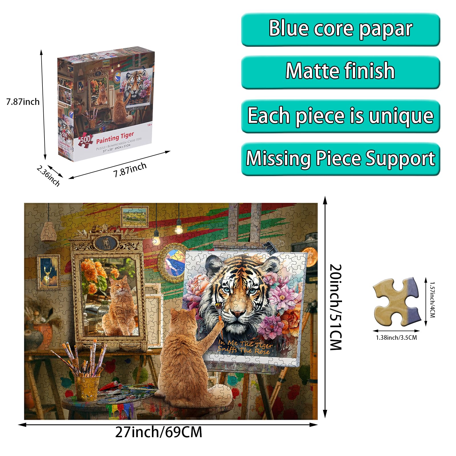 View compareJigsaw Puzzles 500 Pieces Puzzles For Adults,27'' X20'' Large Puzzle Animal Cat Painting Tiger Family Party Holiday-Each Piece I