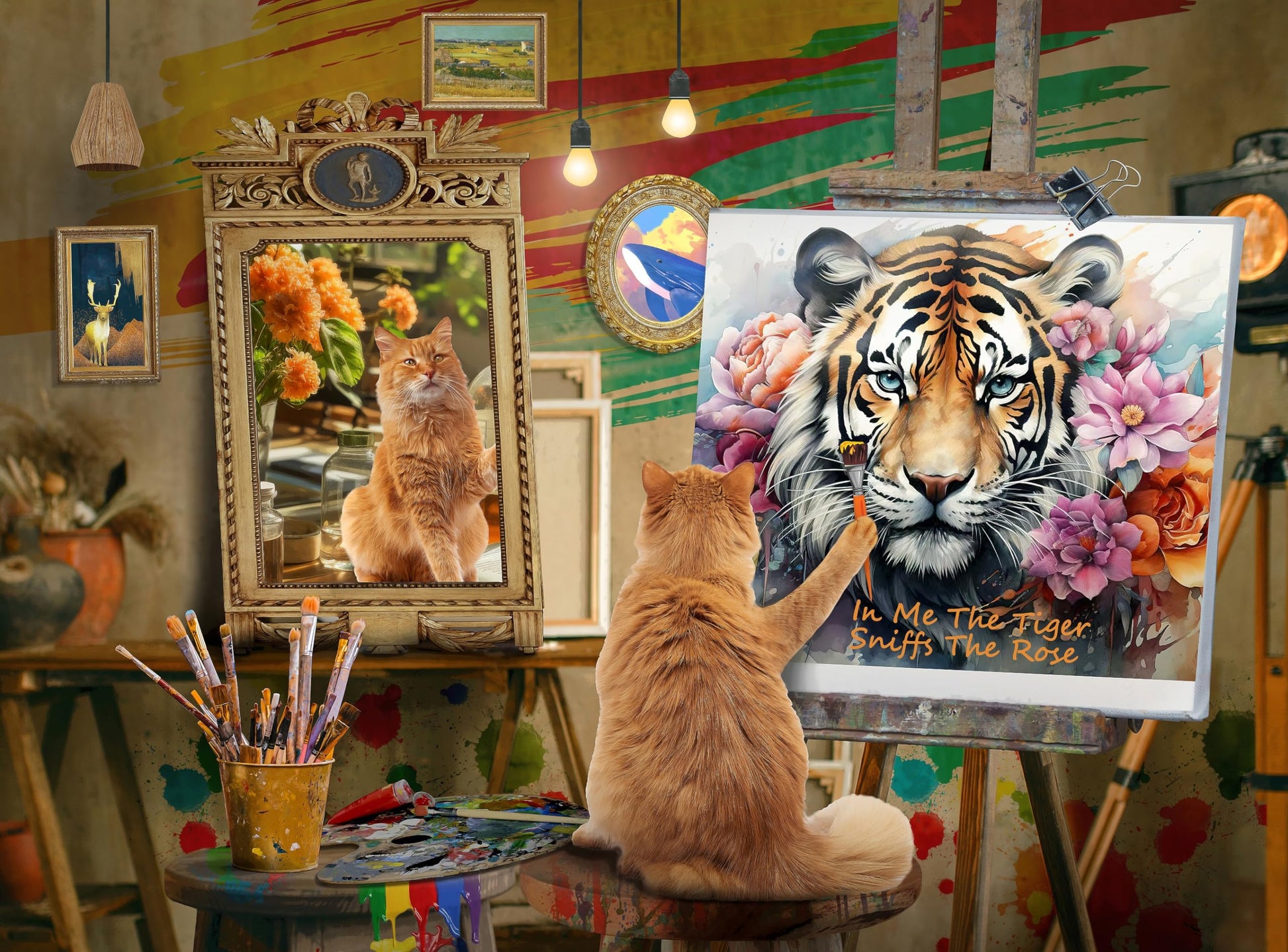 Jigsaw Puzzles 500 Pieces For Adults,27'' X20'' Cat Draw Tiger Large Puzzle Family Party Holiday-Each Piece Is Unique