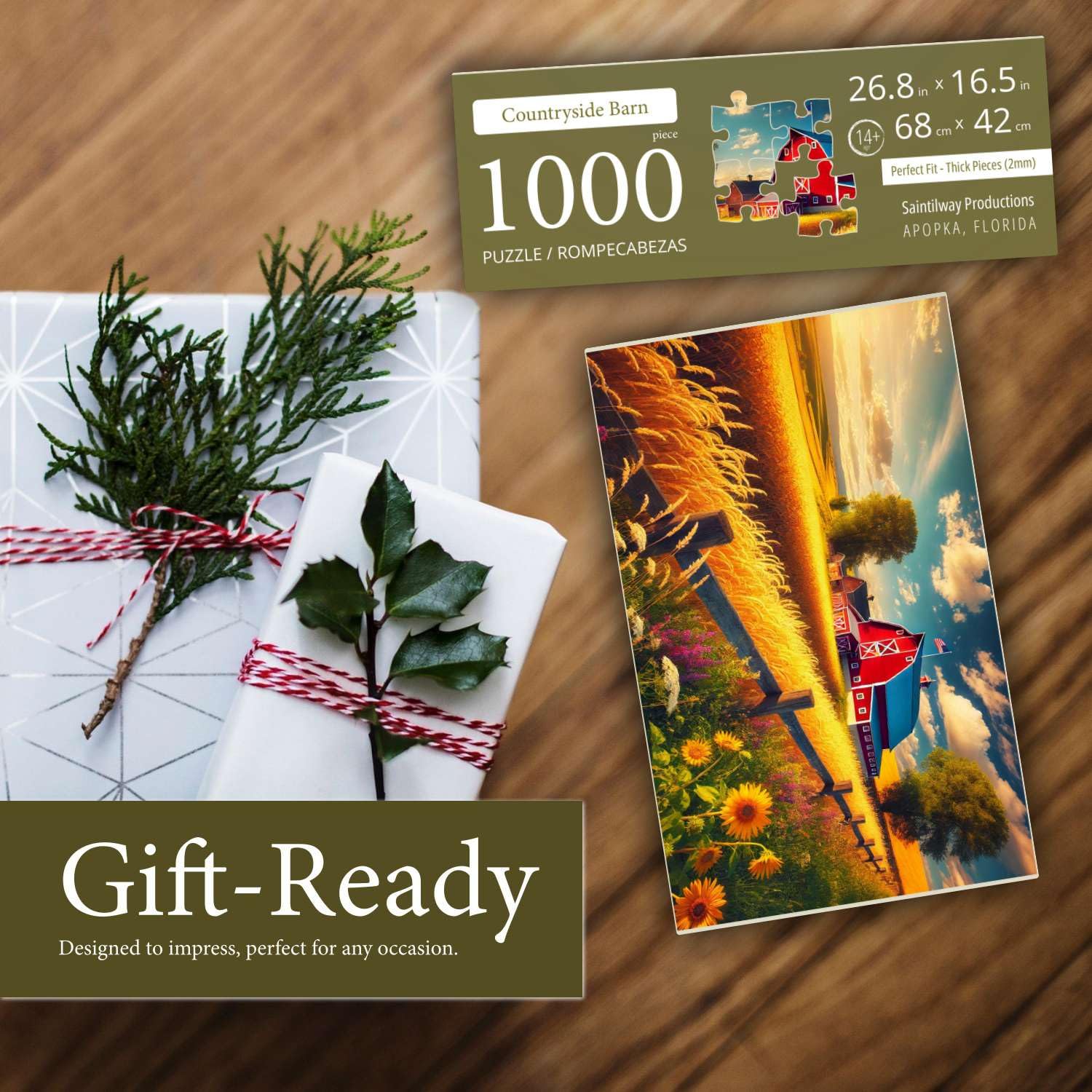 Jigsaw Puzzles for mature-themeds 1000 Pieces - Challenging Colorful and Unique with Large Poster - Letters on Back - AI Art - Rompecabezas para mature-themedos - Gifts for mature-themed Couples Teens (Countryside Barn)
