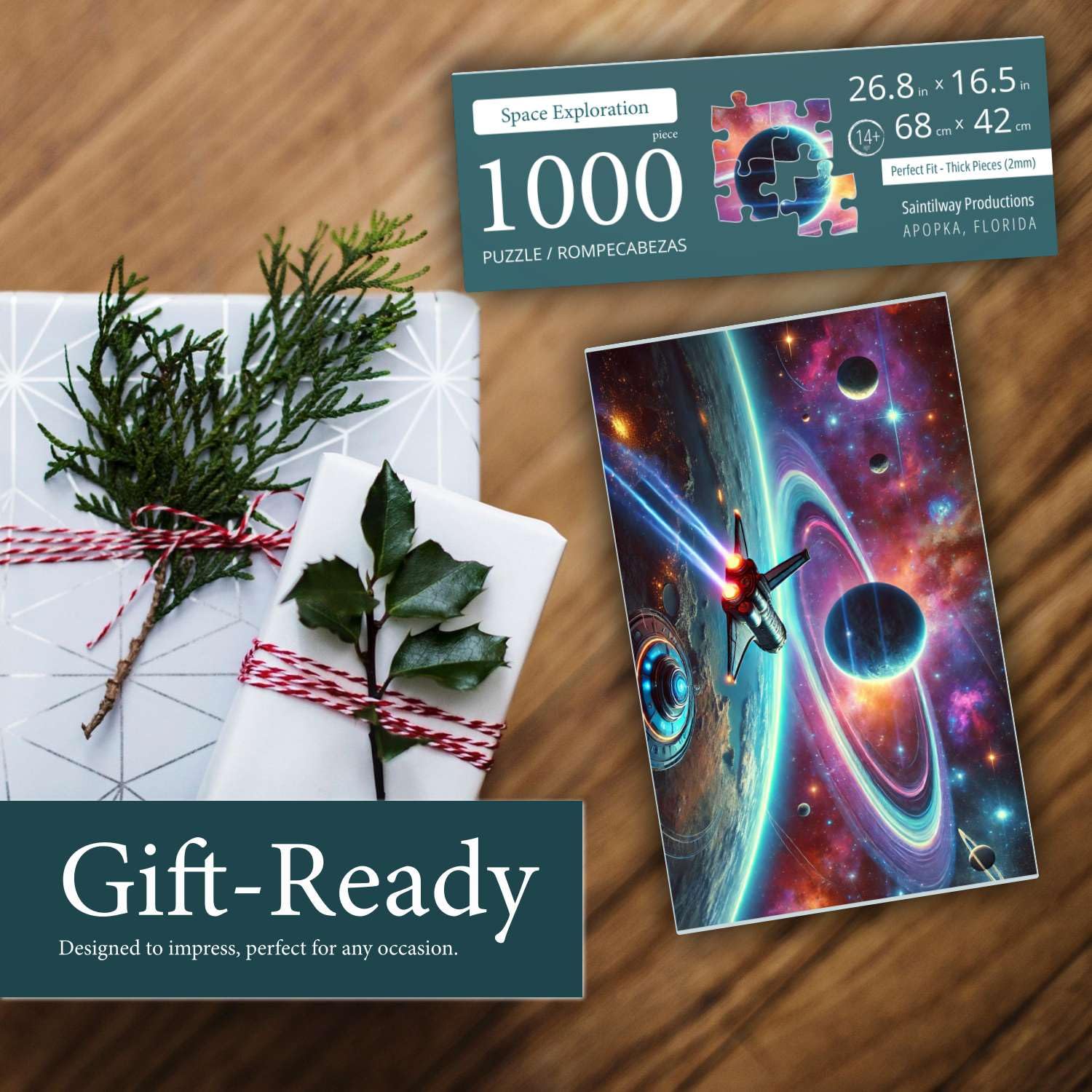 Jigsaw Puzzles for mature-themeds 1000 Pieces - Challenging Colorful and Unique with Large Poster - Letters on Back - AI Art - Rompecabezas para mature-themedos - Gifts for mature-themed Couples Teens (Space Exploration)