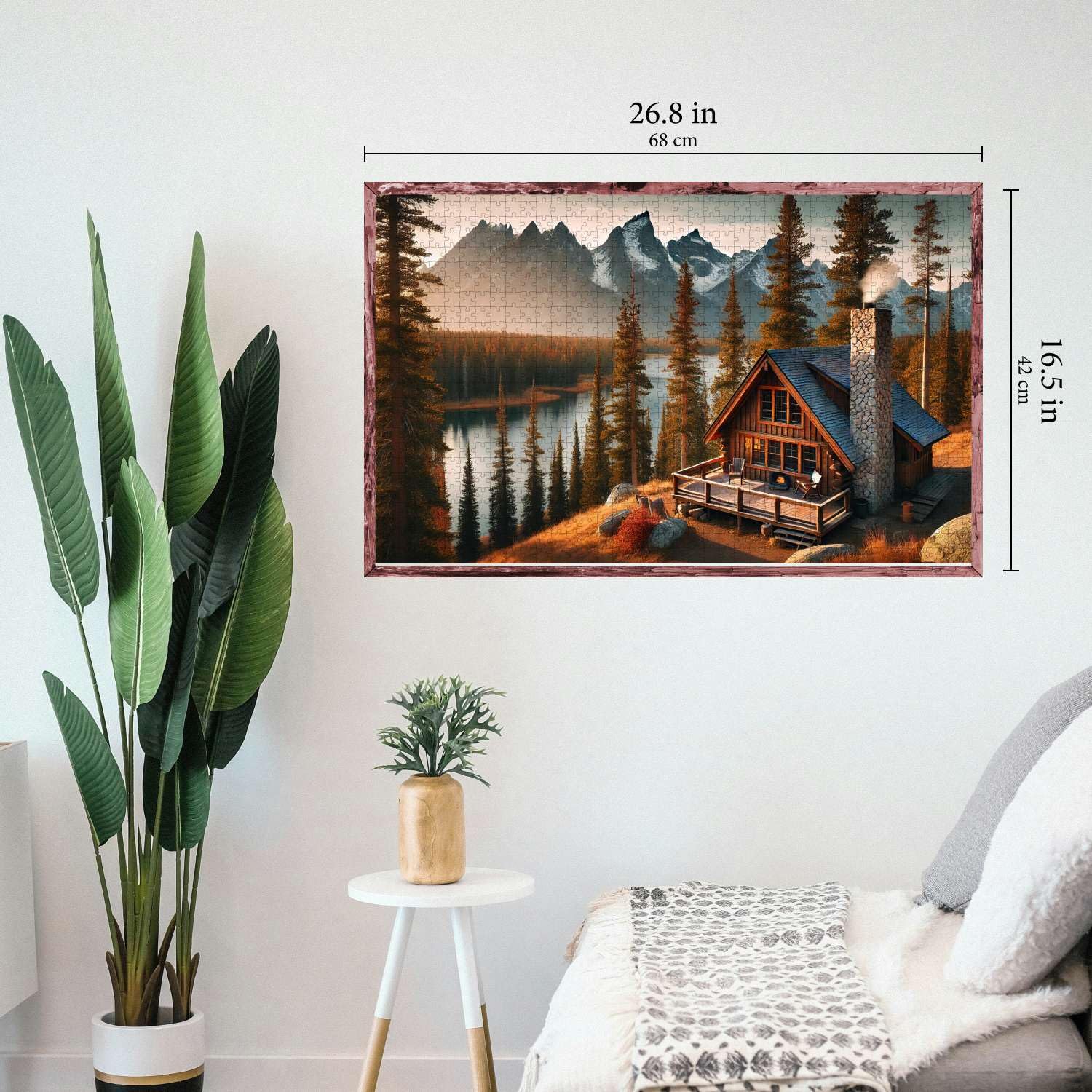 Jigsaw Puzzles for mature-themeds - Challenging Colorful and Unique with Large Poster - Letters on Back - AI Art - Rompecabezas para mature-themedos - Gifts for mature-themed Couples Teens (Cozy Mountain Cabin)