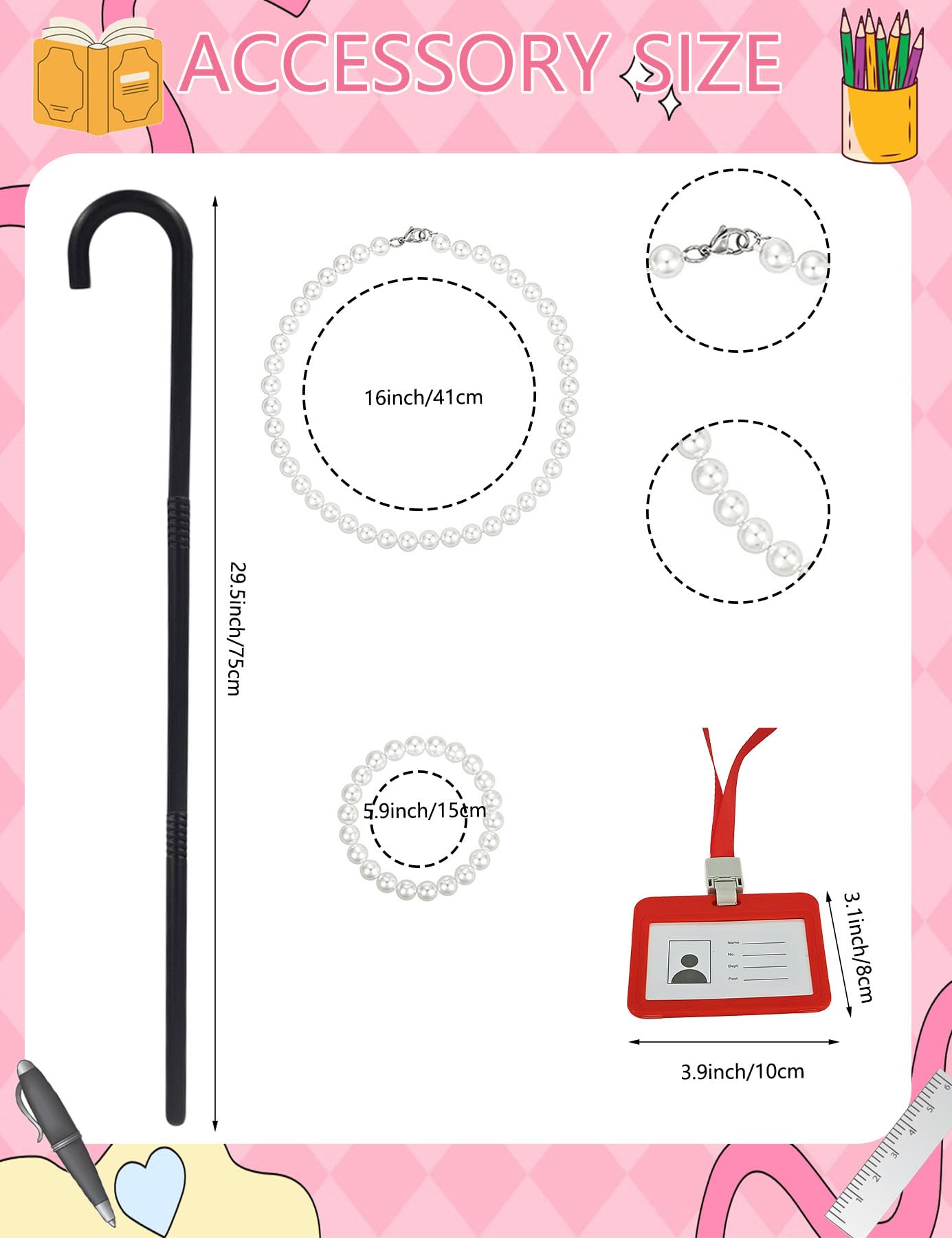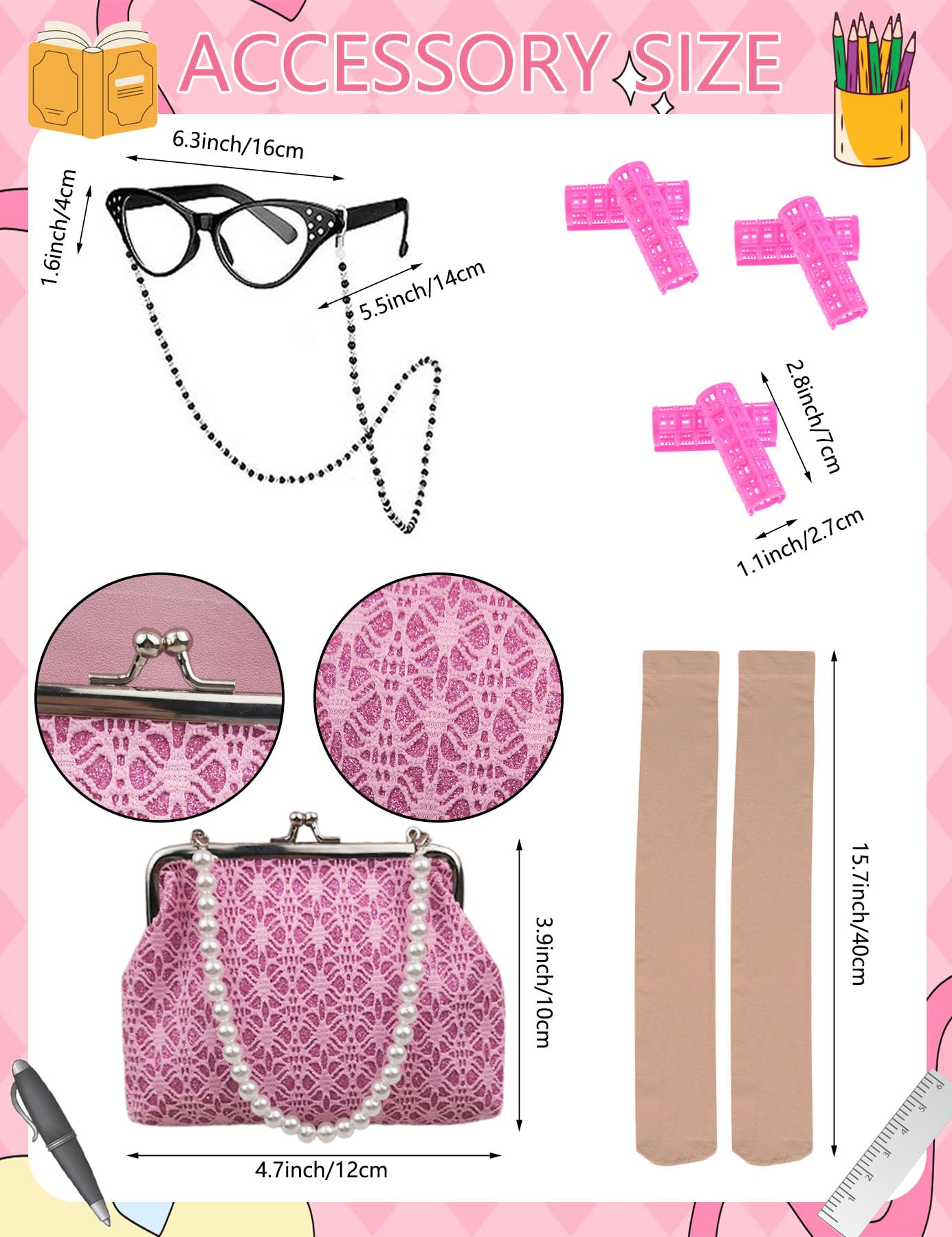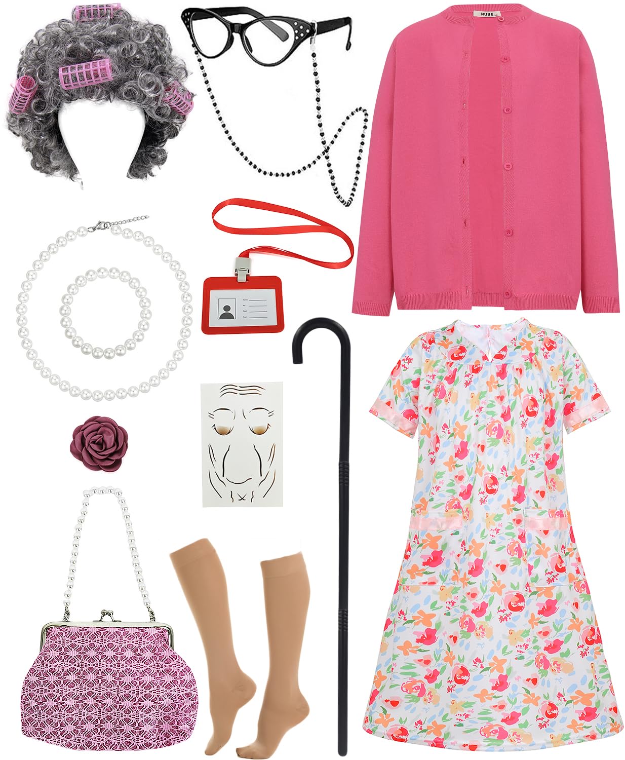 15 Pcs Old Lady Costume Kids Girls Grandma Cosplay Outfit School Party Dress Up with Accessories
