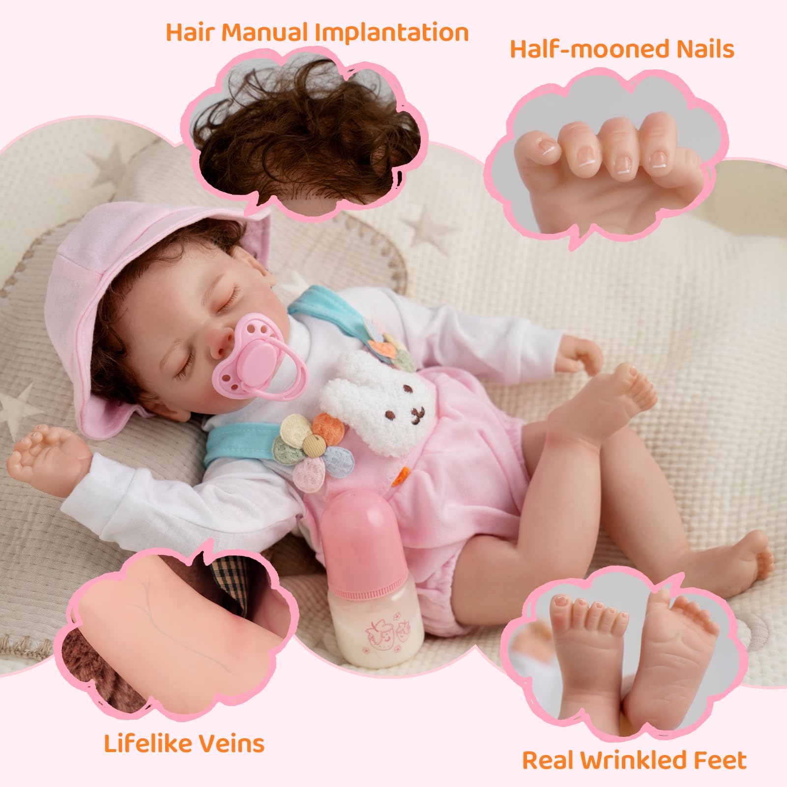 Jirachi 18- Inch Lifelike Reborn Baby Dolls, Adorable Real Life Soft Body Sleeping Baby Girl, Realistic Reborn Baby With Toy Accessories For Kids