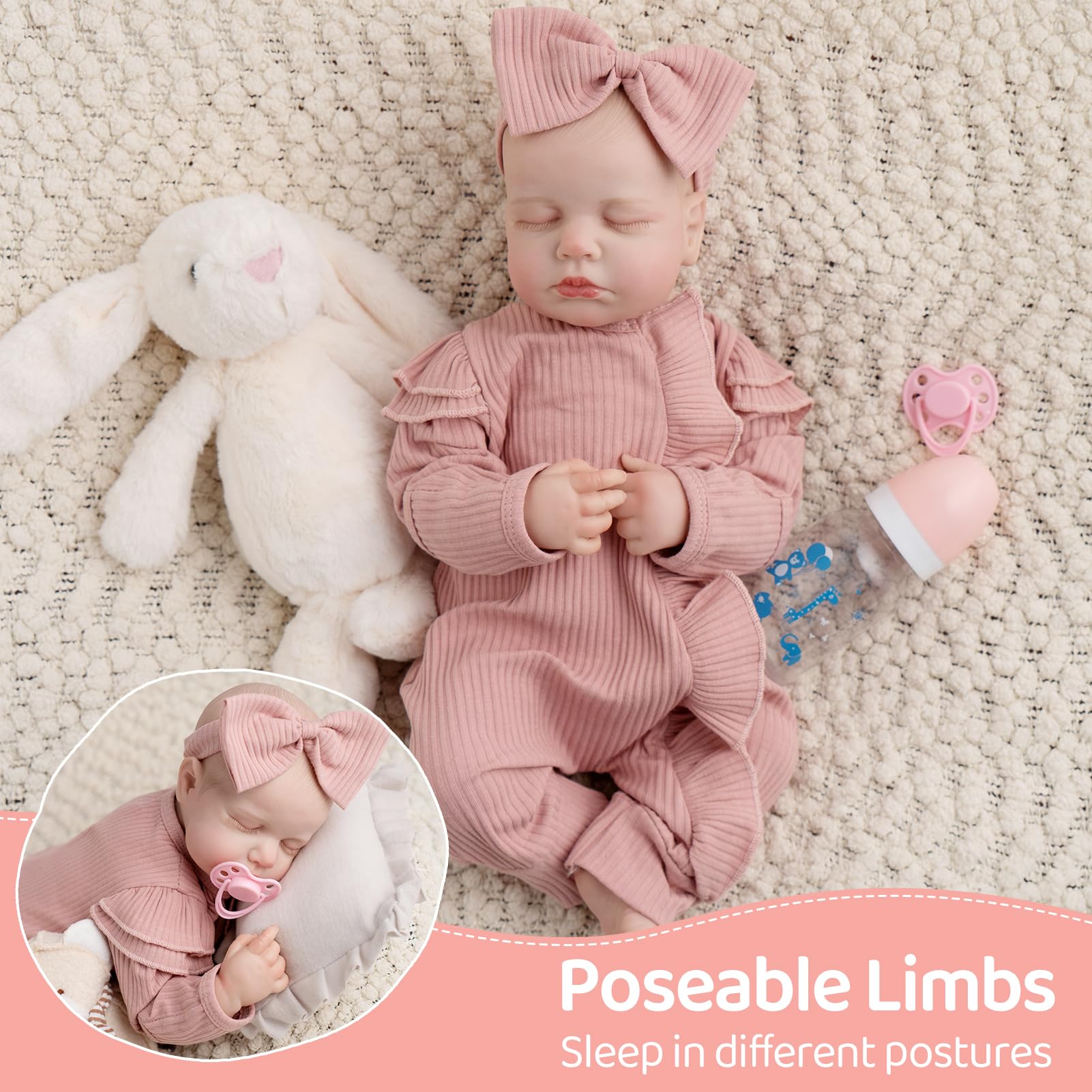 View compareJirachi Realistic Reborn Baby Dolls, Sleeping Real Life Soft Body Baby Girl, 18 Inch Lifelike Reborn Baby With Pink Clothing Set For Kids 3+
