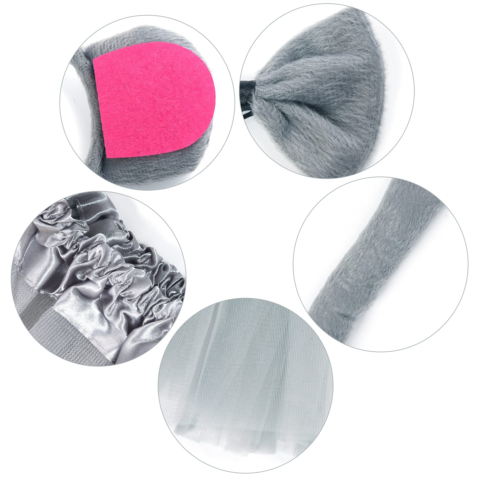 View compareJmkcoz Gray Mouse Costume Tutu Set Mouse Ear Headband Bowtie Tail Tutu for Halloween Cosplay Party Dress Up Accessories