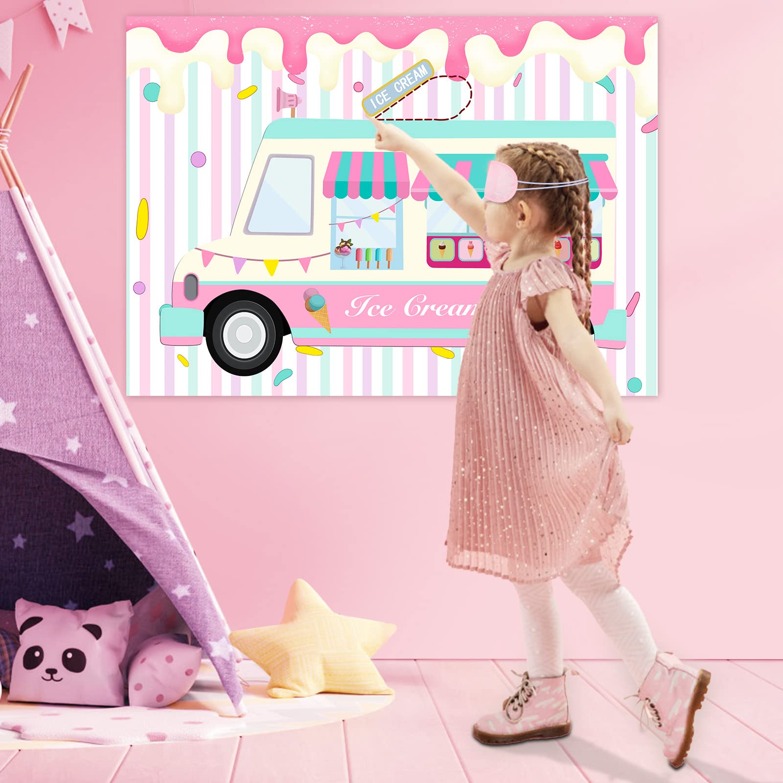 Joarhonal Pin The Ice Cream On The Ice Cream Truck Shop - Ice Cream Party Games For Kids Girls 20'' X 28'' Ice Cream Game Poster