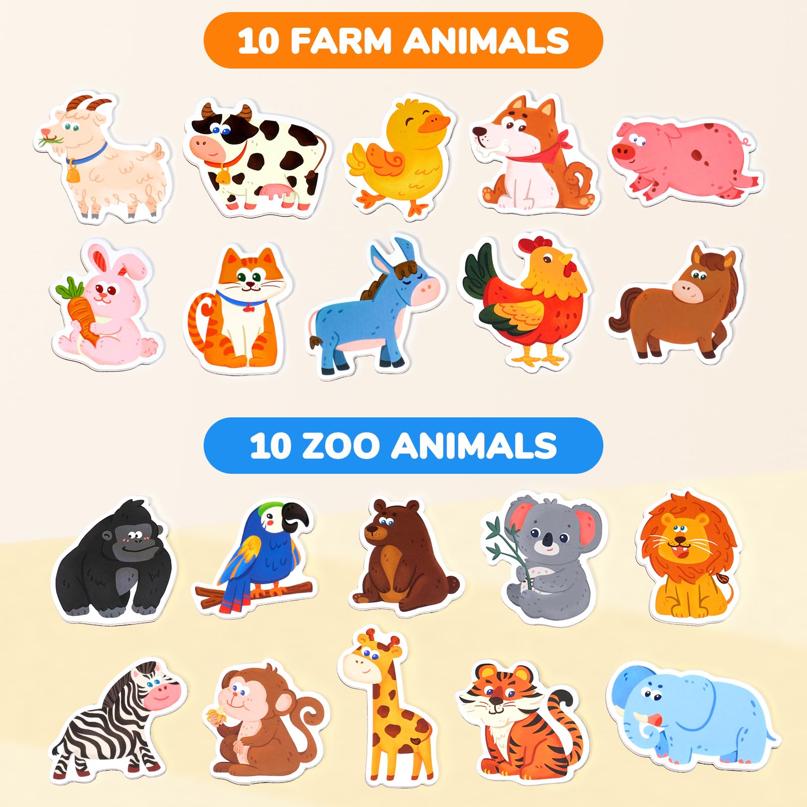 JoyCat Wooden Fridge Magnets for Toddlers, 20 Cute Animals Refrigerator Magnets for Kids, Full Back Magnetic Toys, Fun Education