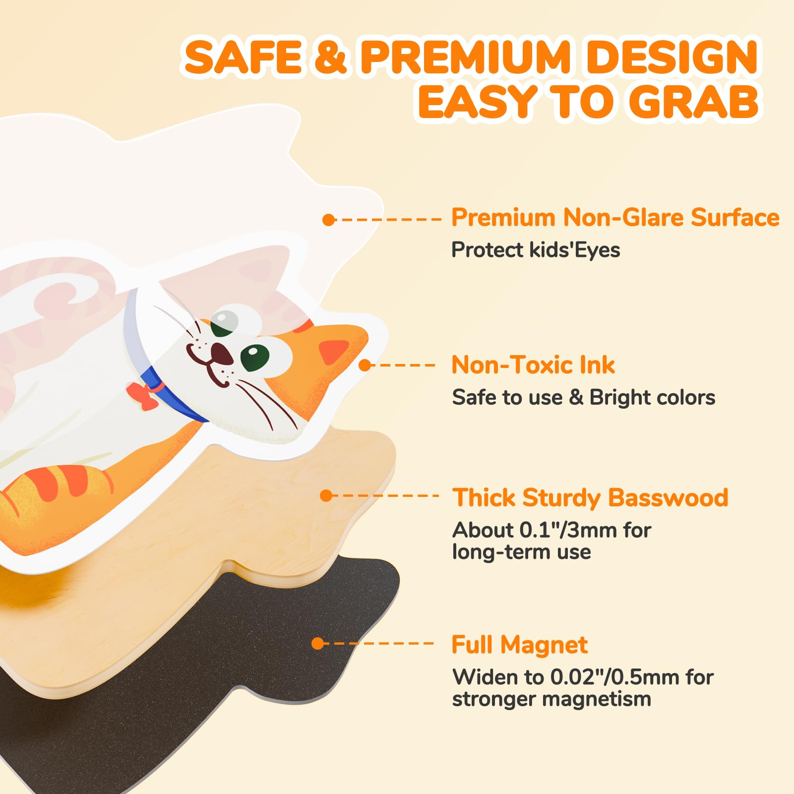 The JoyCat Wooden Fridge Magnets for Kids offer a fun and educational way to help toddlers learn while they play! Featuring 20 adorable animal magnets, this set encourages early animal recognition, fine motor skills, and hand-eye coordination. Made from durable, non-toxic basswood with a full magnet backing, these colorful magnets are safe, sturdy, and easy for little hands to grip. With smooth, rounded edges and vibrant animal designs, they make learning fun and engaging. Ideal for decorating the fridge, whiteboards, or any metal surface, this set is a great gift for birthdays or holidays, providing hours of interactive play and creativity. Safe, engaging, and perfect for sparking curiosity - the JoyCat Wooden Fridge Magnets are a playful addition to any toddlers learning routine!