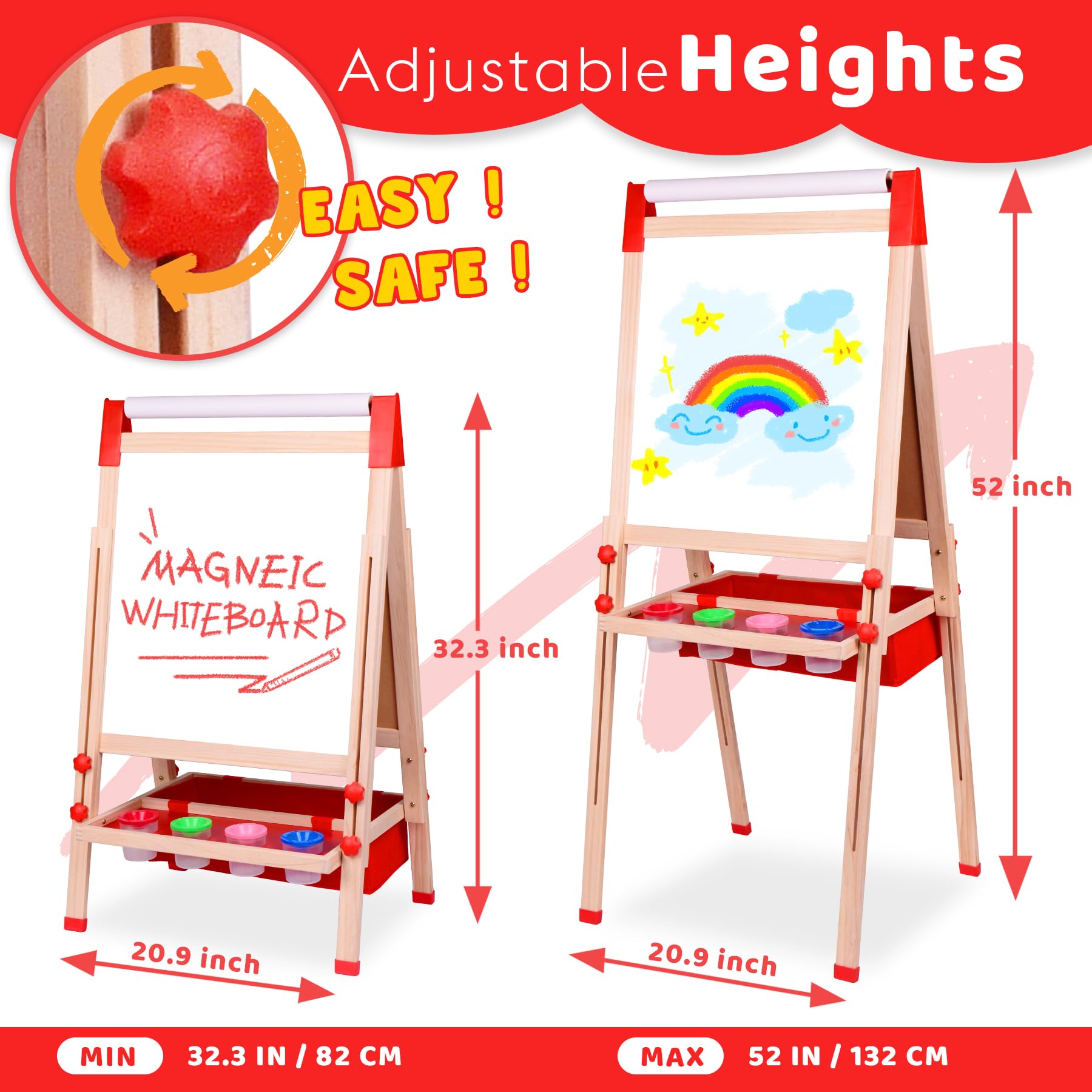 Joyooss Art Easel For Kids Easel For Toddlers, Adjustable Standing Double Sided Toddler Easels Kids Chalkboard Kid Easel With Pa