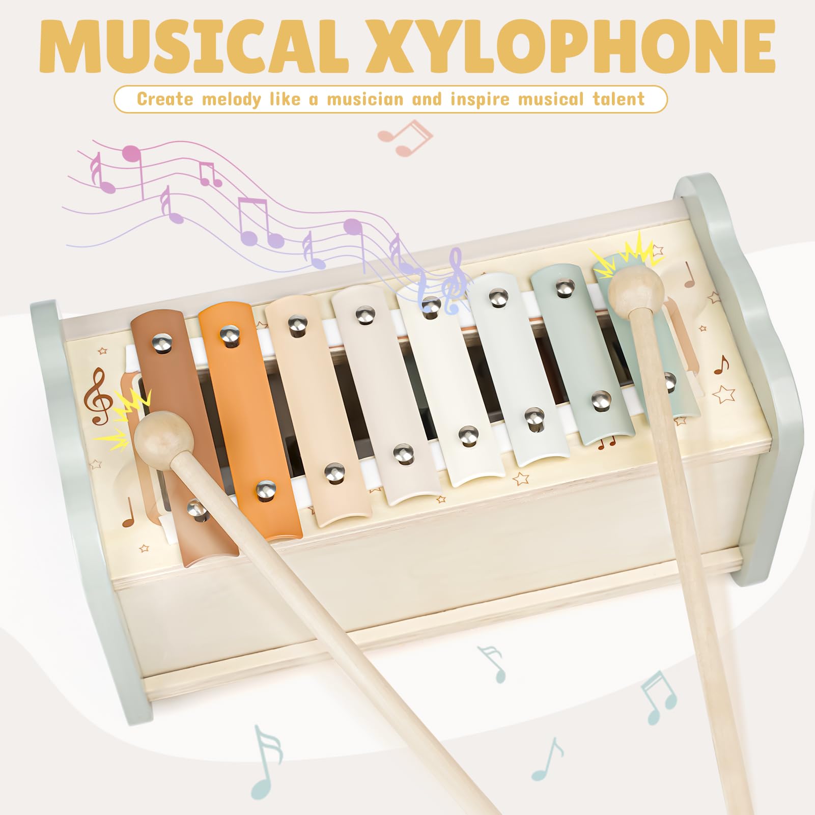 Joyreal Wooden Montessori Toys for 1 Year Old - Hammering Pounding Toy with Xylophone & Fishing Game - Educational Toddler Activities for 1 2 3 Year Old Christmas Birthday Gifts