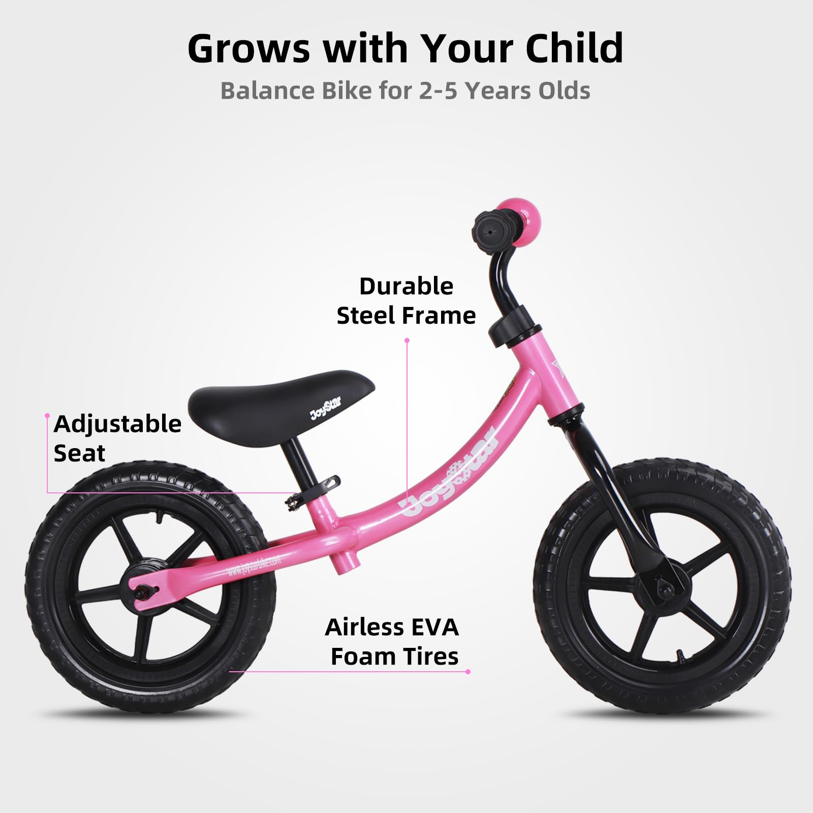 Joystar Kids Balance Bike For Boys & Girls 1.5-5 Years Old, Toddler Push Bike With Eva Polymer Foam Tire For Early Rider, 12 Inch Kids Glider Training Bike Specifications: Brand: Joystar Color: Pink, Red, Blue, Orange, Purple, Silver, Green Category: Kids' Balance Bike Age Range: 18 Months To 5 Years Feature: Light, Safe, Easy, Smart, Fast Seat Adjustment: 31Cm/12.6Inch-47Cm/18.5Inch From The Ground Handlebar Adjustment: 52Cm/20.4Inch-57Cm/22.4Inch From The Ground Dimensions And Weight: Product Weight: 2.85 Kg Package Weight: 3.45 Kg Package Size(L X W X H): 60.00 X 30.00 X 15.00 Cm / 24 X 12 X 6 Inches Package Contents: 1 X Kids Balance Bike, 1 X Carbon Steel Frame, 1 X Multi-Function Wrench, 1 X English User Manual