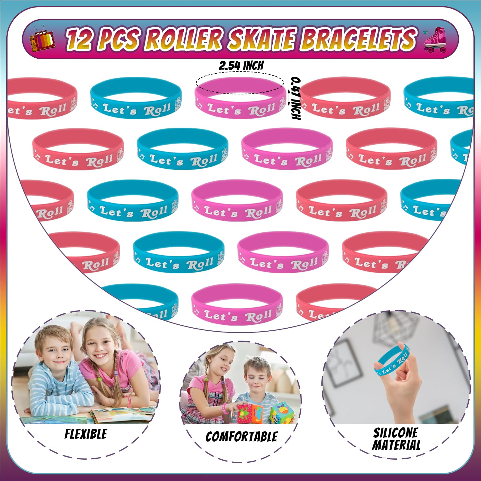 134 Pcs Roller Skate Party Favors Set with Straws Keychains Slap Bracelet Tattoo Roller Skate Stickers Wristbands Goodie Bags Roller Skating Party Supplies Skate Party DecorationsPackage Includes:Roller Skate Straw 12;Roller Skate Slap Bracelet 12;Roller Skate Rubber Wristband 12Roller Skate Keychain 12;Roller Skate Tattoo Sticker 12;Roller Skate Sticker 50;Roller Skate Goodie Bag 12;Round Sealing Stickers 12;Unique roller skate party favors:Filled with cool roller skate elements which match well with your roller skate party decorations,children must be very excited when they receive this gifts.Safe material:All of our products have been carefully selected.All accessories are harmless to children, please feel free to use.Dont miss our roller skate party supplies if youre going to hold a roller skate party.Let kids enjoy a nice birthday party with their partners.Warm notes:Please allow a little error on the size due to manual measurement.The color might have a slight difference due to different displays.