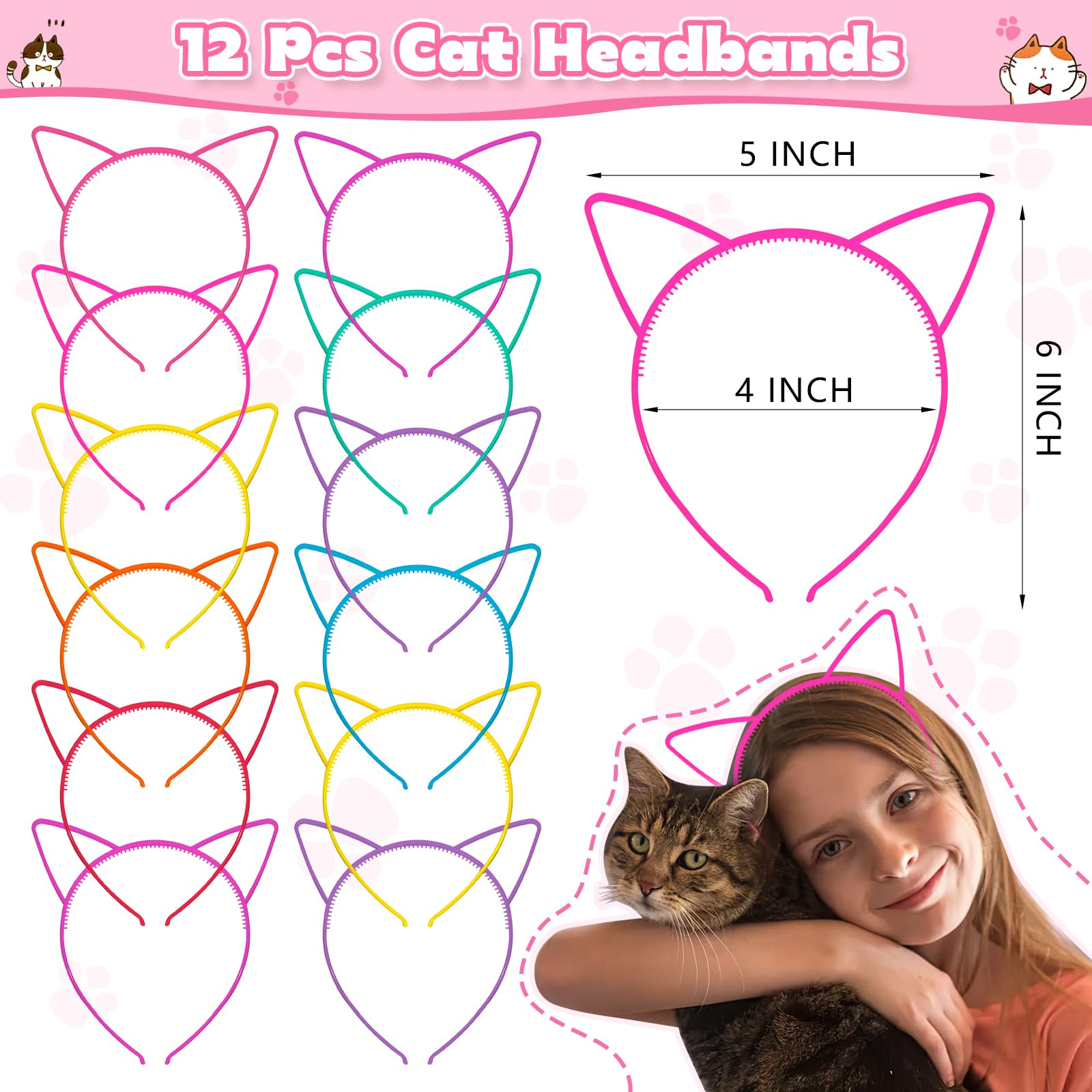 158Pcs Cat Party Favors Set with Cat Headband Keychains Tattoo Stickers Erasers Slap Bracelets Hairpin Goodie Bags Cat Party Supplies Cat Birthday Decorations Girl Party FavorsPackage Includes:Cat Sequins Keychain 12;Cat Ears Headband 12;Cat Slap Bracelet 12Cats Make-a-Face sticker 12;Cat Hairpin 12;Cat Eraser 12;Cat Tattoo Sticker 12; Cat Sticker 50;Cat Theme Party Goodie Bag 12;Round Sealing Sticker 12;Unique cat party favors:Filled with cute cat elements which match well with your cat birthday decorations,children must be very excited when they receive this gifts.Safe material:All of our products have been carefully selected.All accessories are harmless to children, please feel free to use.Dont miss our cat party supplies if youre going to hold a cat or girl party.Let kids enjoy a nice cat party with their partners.Warm notes:Please allow a little error on the size due to manual measurement.The color might have a slight difference due to different displays.