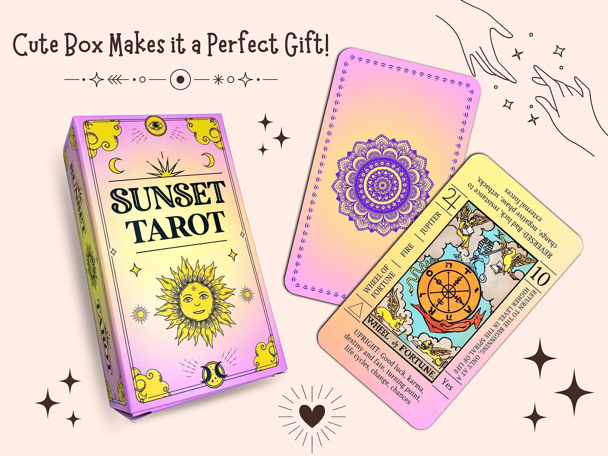 - Q: Can these tarot cards be a good gift? A: Absolutely! The Sunset Tarot Deck comes beautifully packaged in a charming box, making it a perfect gift for friends, family, or even yourself, especially for those interested in tarot and spirituality.