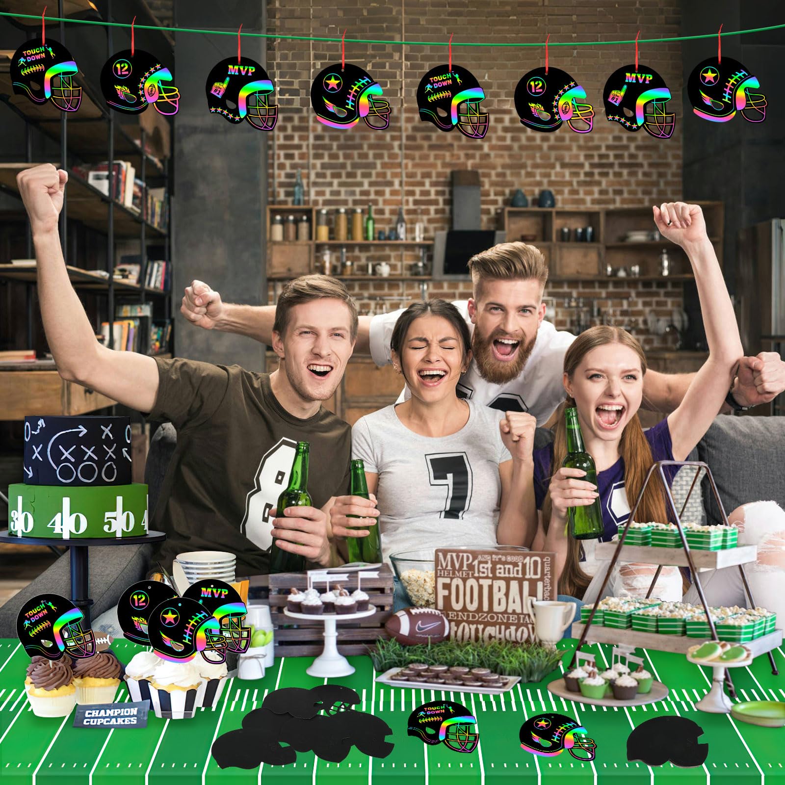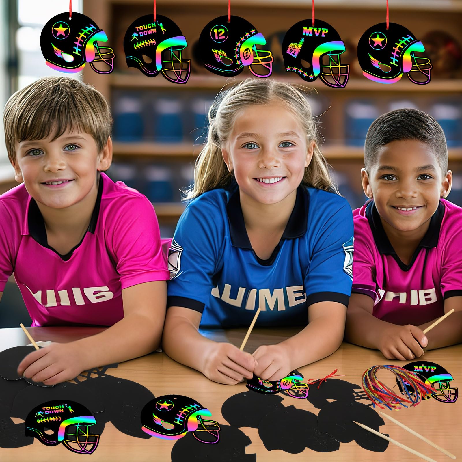 JULMELON 36 PCS Football Crafts for Kids, Rainbow Scratch Paper Art for Kids Football Party Favors Football Helmet Scratch Off C